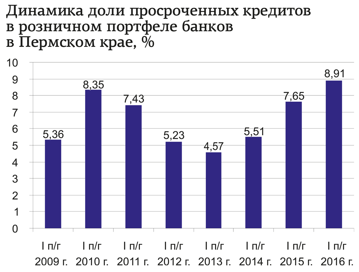 В этом смысле 2016 год не похож на 2013—2014 годы. Согласно данным Банка России, объём просроченной задолженности по кредитам физлиц за январь—июль вырос всего на 1%. Напомним, на пике кризиса прирост просрочки превышал 50% в год, а ещё за первое полугодие прошлого года её объём увеличился на 16%. Такой стабильности российский банковский сектор не знал со времён кризиса 2008 года. Другой вопрос, что это стабильность совсем иного порядка: сейчас доля просроченной задолженности в кредитном портфеле банков в среднем равна 9%, это в два раза больше, чем перед кризисом.