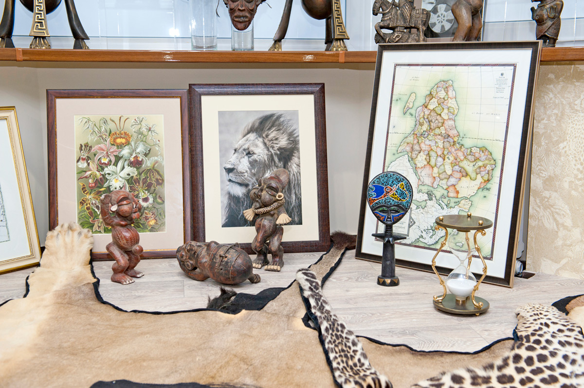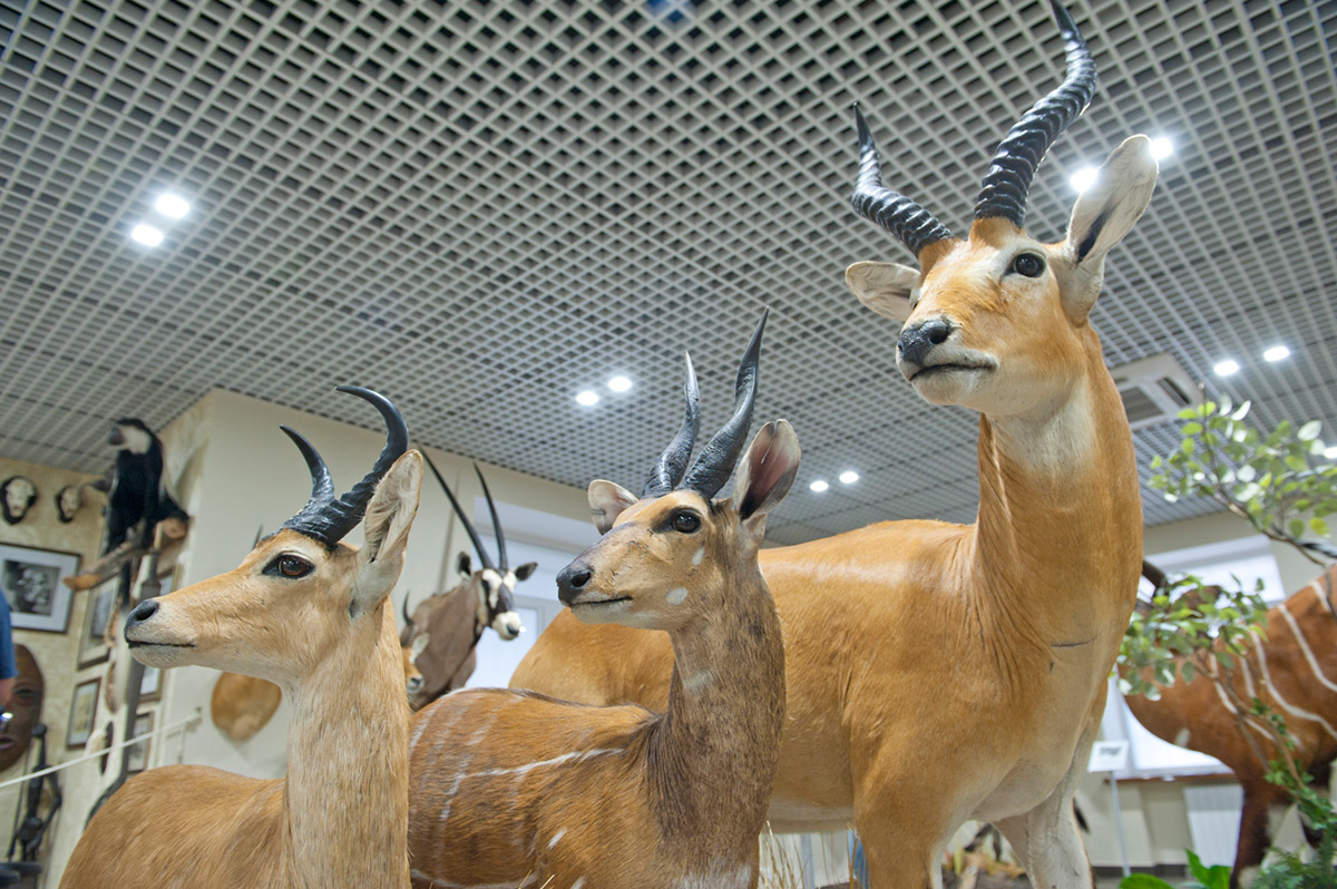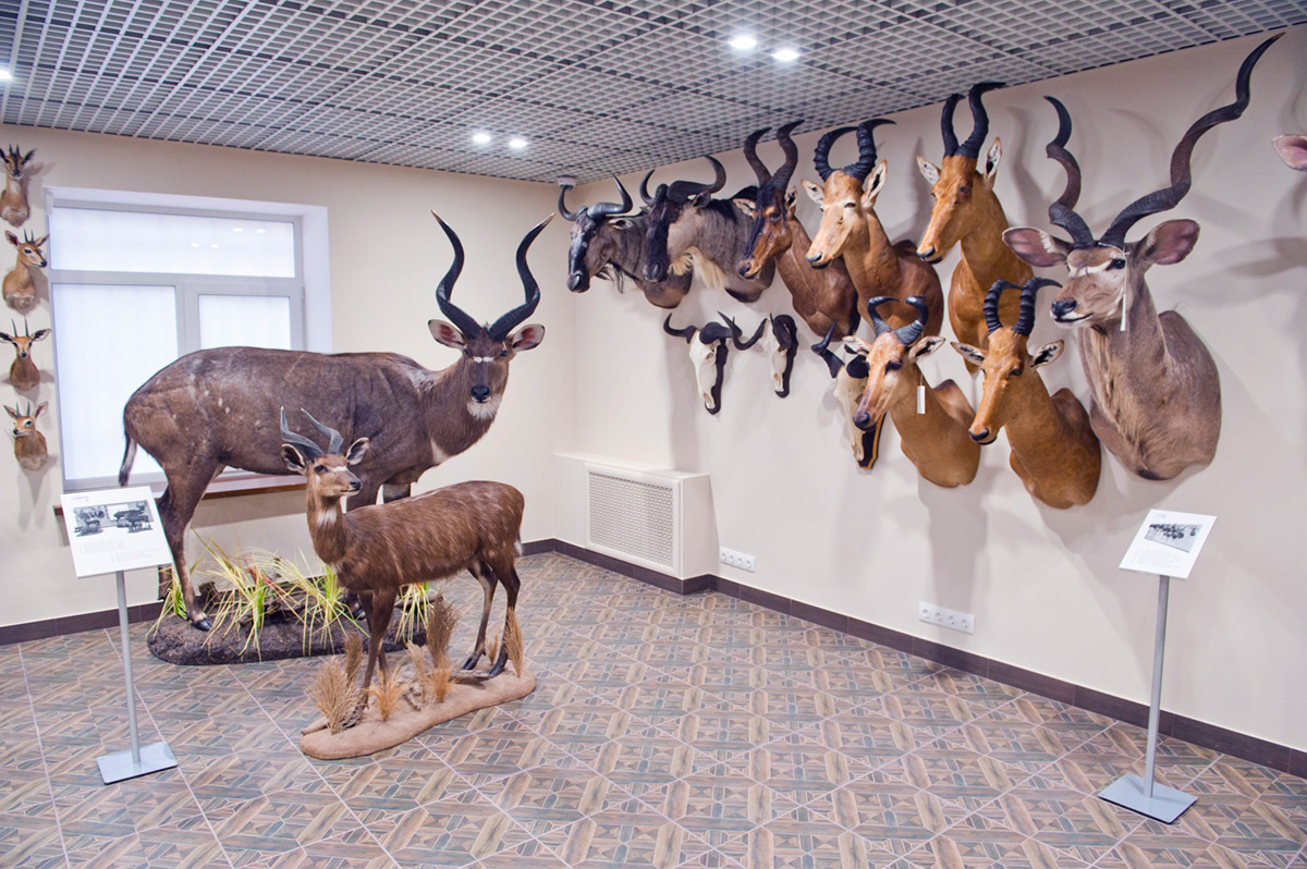 Здесь проходят одновременно две выставки: «Сафари», посвящённая африканским трофеям, и «Несвоевременный талант» — выставка работ Александра Репина из коллекции Игоря Фомина. Первая производит странное впечатление: всё помещение заполнено чучелами животных и жутковатыми предметами вроде табуретов из слоновьих ног. Говорят, детям нравится. Есть здесь и сувениры другого характера: традиционные маски, бронзовые статуэтки, текстиль и прочие ремесленные изделия африканских народов, а один экспонат просто потрясающий — эфиопский ритуальный щит, разрисованный христианскими сюжетами.