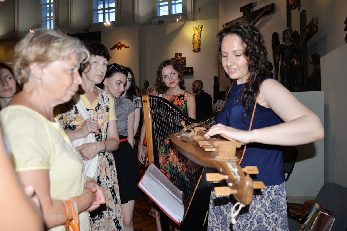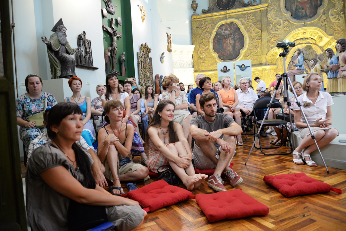 Дуэт играл сразу на несколько голосов, незначительно варьируя мелодические линии от такта к такту. Музыка будто разворачивалась в горизонтальной плоскости, добираясь до верхних регистров по извилистым спиралям. Акустика верхнего зала галереи оказалась выгодной для инструментов: звук будто накрывал публику облаком, в котором можно было различить более плотный и шершавый тембр виолона. Программа оказалась разнообразной: незамысловатый мотив итальянской песенки чередовался с изощрёнными соло виолона, а потоковая полифония иногда оживлялась дуэтом мандолины и тамбурина.