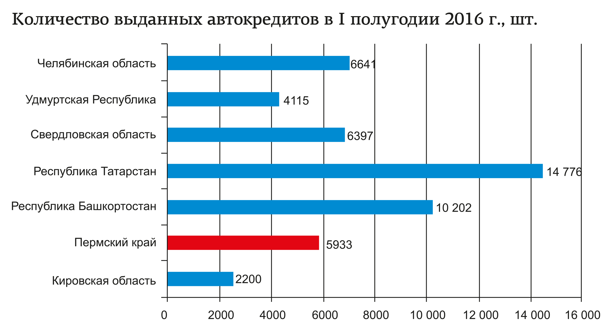 В 2016 году в Пермском крае отмечается резкое увеличение количества выданных автокредитов. По данным Национального бюро кредитных историй (НБКИ), во втором квартале в регионе было оформлено более 3,5 тыс. автокредитов, и это почти в полтора раза больше, чем в предыдущем квартале. При этом в среднем по стране прирост составил 32%. Таким образом, Пермский край не только опережает этот показатель, но и лидирует по динамике среди соседних регионов.