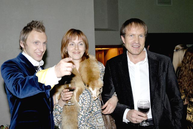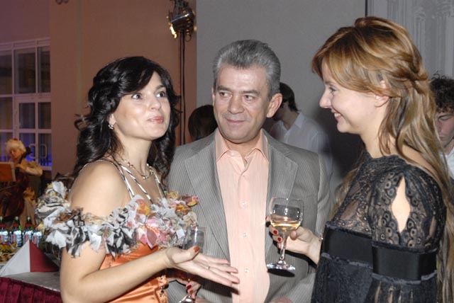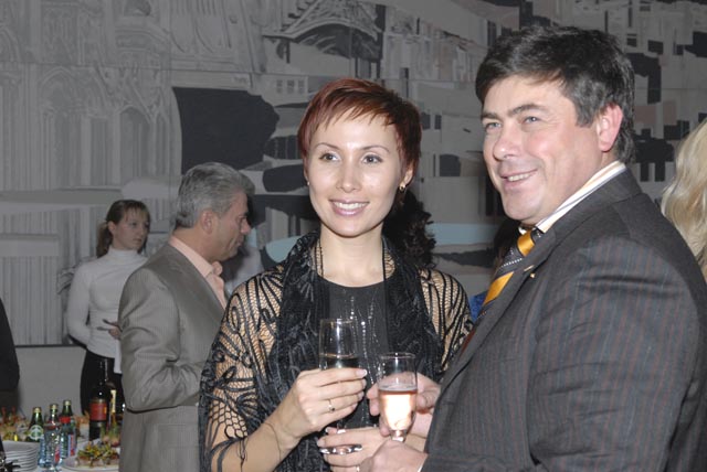 Многочисленные (по отзывам гостей, даже слишком многочисленные) фотографы сосредоточились вокруг невозмутимой пары в центре — Лариса Горчаковская и Петр Пьянков под их «прицелами» напоминали мишени. Очевидно, не желая попадать под «перекрестный огонь», прочие гости держались от них несколько в стороне, а Алексей Чернов с супругой Мариной и вовсе находились в другом конце зала.