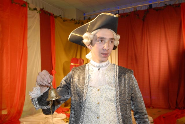 «Здравствуйте! Мы очень рады вас видеть», — несколько растерянный актер-первокурсник Пермского института культуры и искусств, одетый в золоченый камзол с позументами, очень старался обратиться к каждому входящему персонально. Очевидно, такова была инструкция.