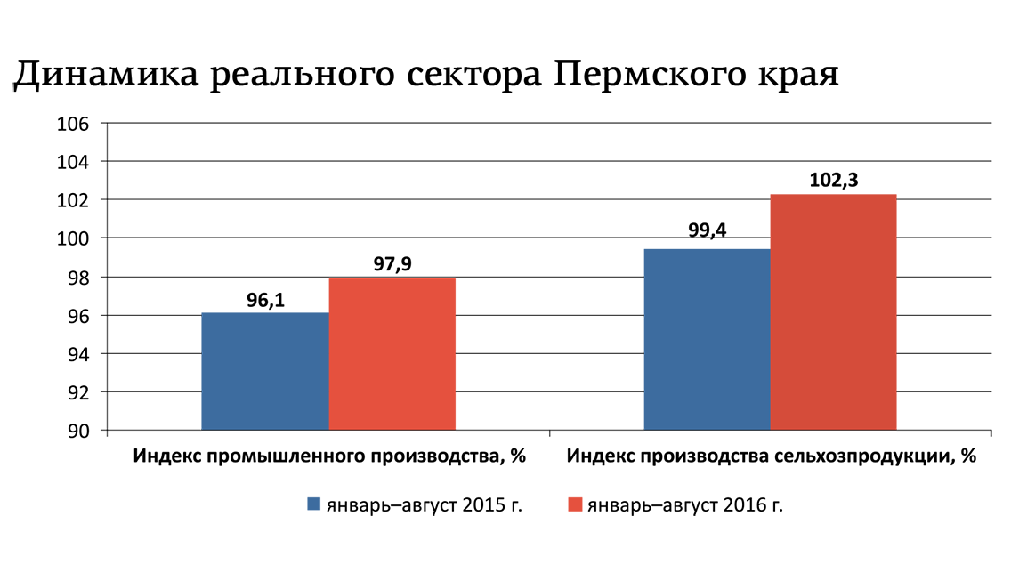 Спустя год после начала текущего кризиса, в середине 2015 года, в экономике Пермского края наметилась тенденция относительной стабилизации. Некоторые эксперты предсказывали переход региона в полосу стагнации, которая продлится несколько лет. Однако вышло иначе: она сохранялась лишь несколько месяцев, вслед за чем последовал новый виток кризиса. Первая половина 2016 года принесла дальнейшее ухудшение ситуации в промышленности и потребительском секторе, и эти тенденции по-прежнему сохраняют свой накал — об этом свидетельствуют данные официальной статистики за третий квартал. Для оценки происходящего больше подходит слово «спад», чем «стагнация».