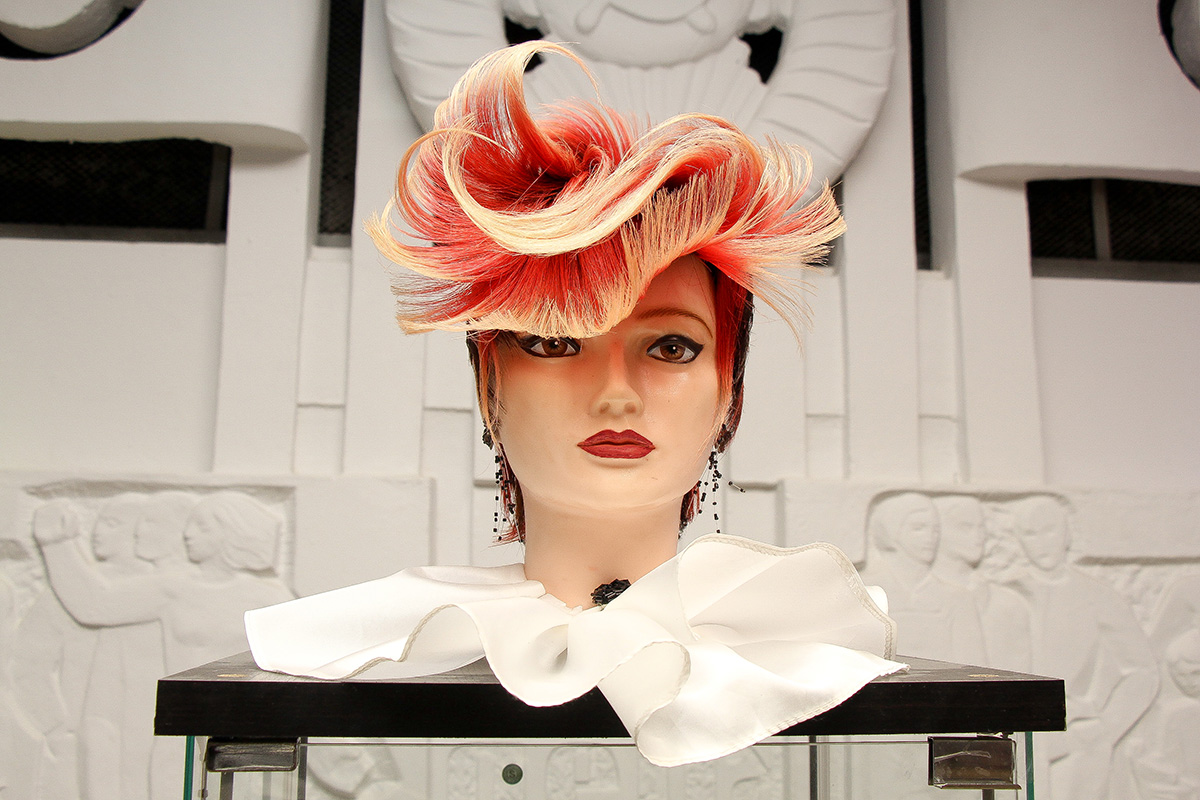 Здесь же можно было увидеть эскизы коллекций одежды Пермского дома моделей и прекрасную экспозицию Светланы Неволиной, мастера невероятных причёсок, настоящего художника.