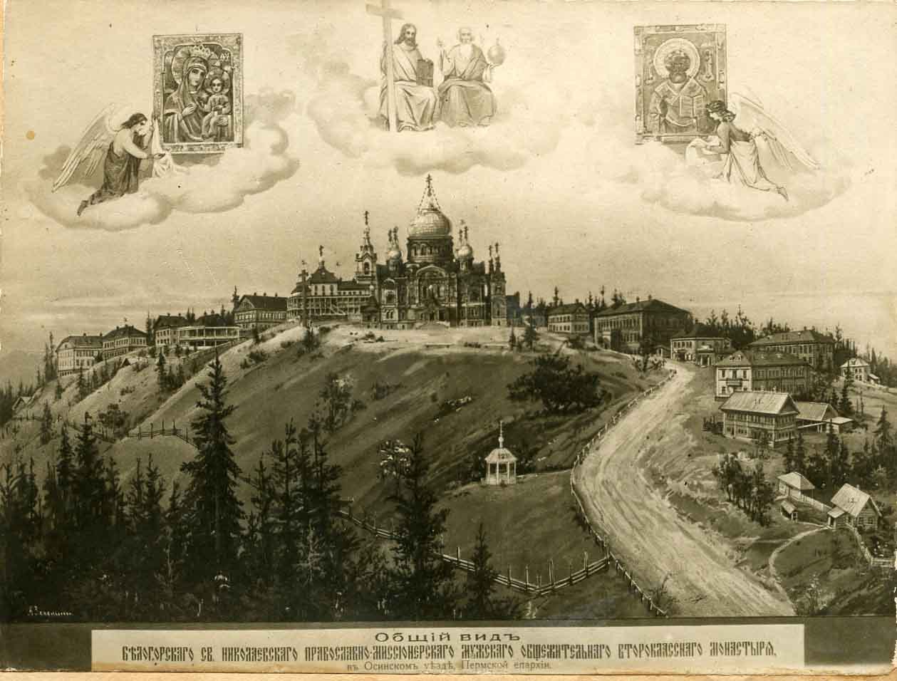 В 1902 году началось строительство Крестовоздвиженского собора. Одни источники говорят, что за образец был взят храм Христа Спасителя в Москве, другие, что Владимирский собор в Киеве. Как бы то ни было, в глухих лесах Пермской губернии, куда и сейчас непросто добраться, начал строиться один из крупнейших храмов России.