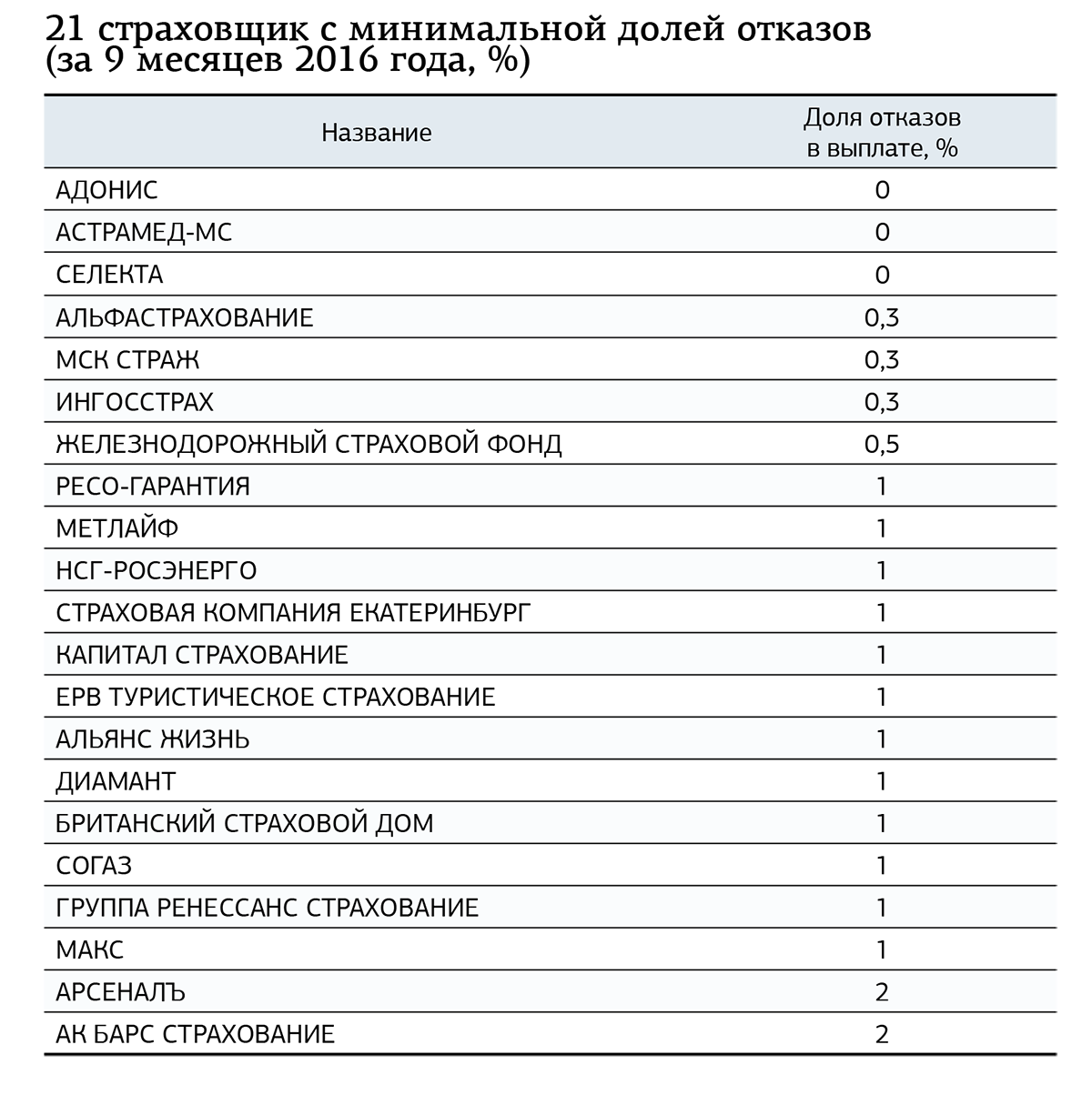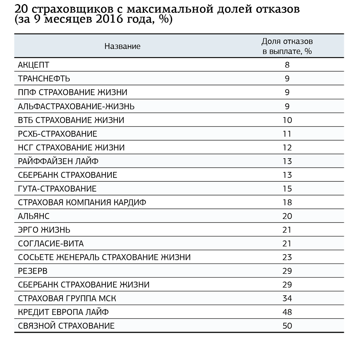 Доля отказов в выплате возмещения от одной страховой компании к другой колеблется в разы