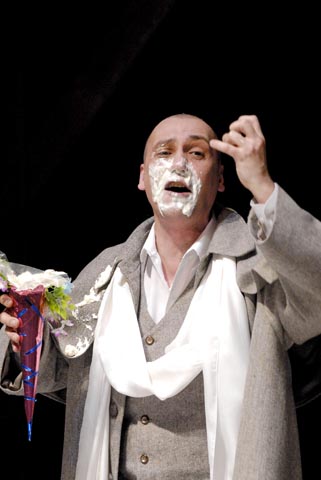 Актеры — они и есть актеры. Со всеми своими слабостями — желанием прихвастнуть, покрасоваться, повыпендриваться. «Ах, как я играл Сирано! А как я играл Лира!». Между строчками пролога, написанного самим Цейтлиным, то и дело мелькают цитаты из самых «театральных» советских фильмов — «Здравствуйте, я ваша тетя!», «Берегись автомобиля»… И все это — за сценой. Буквально. Зрители, сидящие на сцене, видят пролог на большом экране, куда проецируется изображение онлайновой камеры.