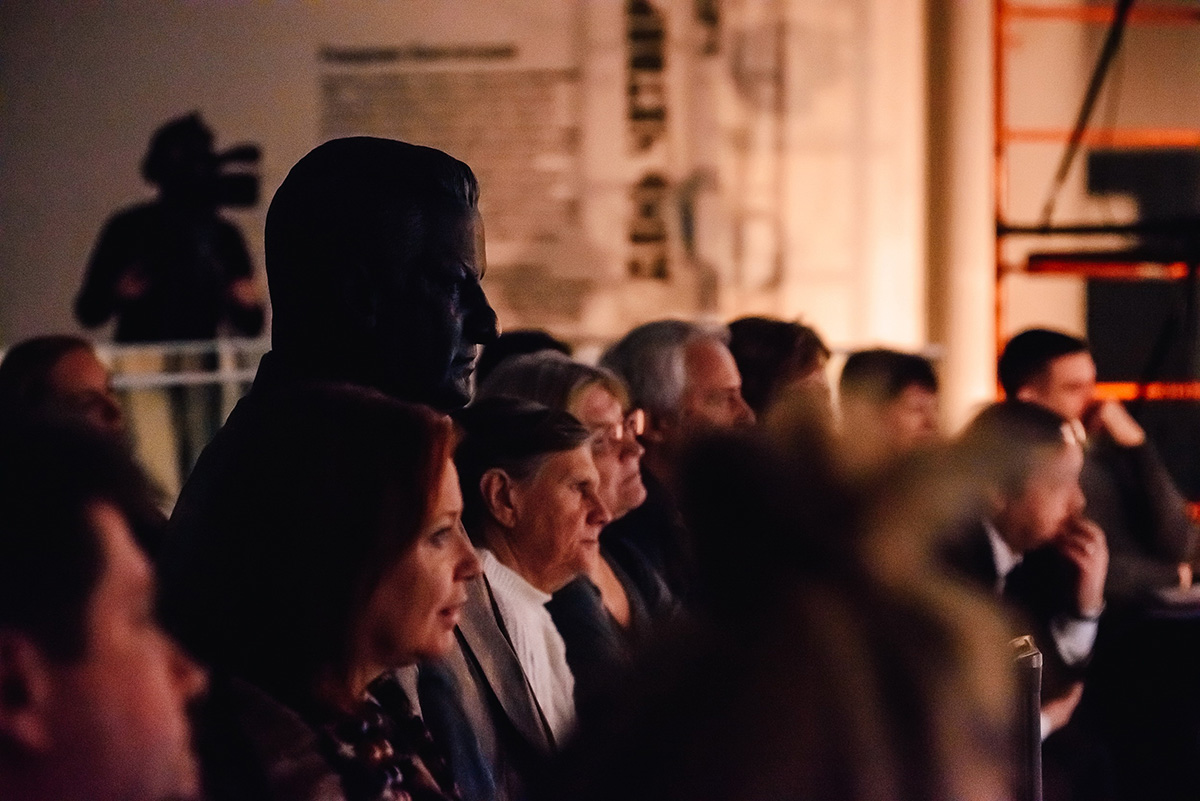 Представления проходили на круглой площади, которая в музее условно называется «Агора» — именно там сидит на скамеечке бронзовый Ельцин, и он стал зрителем спектакля — прочие зрители присаживались с ним рядом.