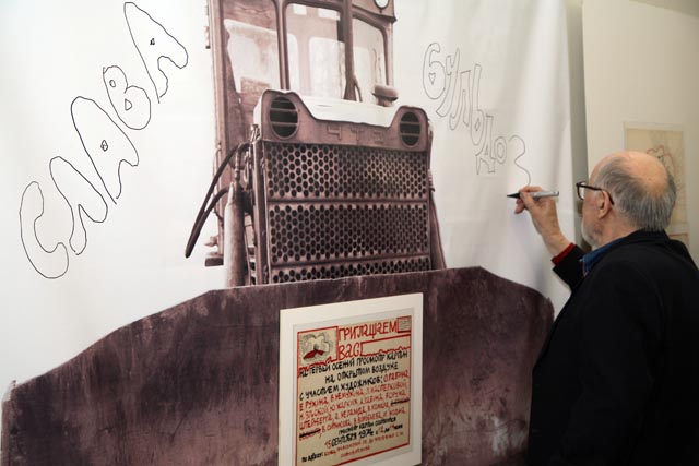 78-летнего художника — иллюстрации к русской классике. В настоящий момент он готовит издание чеховской «Дамы с собачкой», которую хочет проиллюстрировать коллажами из открыток и фотографий начала ХХ века.