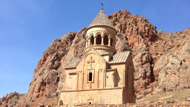 Ещё поразительнее маленькая, романтичная церковь Нораванк, куда тоже лучше ездить весной. Сначала вы въезжаете в узкое, но светлое ущелье, по бокам которого цветут нежным розовым цветом кусты кизила. Потом подъезжаете к скромному святилищу, и гид рассказывает любовную историю, давным-давно случившуюся в этих местах, — про княжну и архитектора. Там, конечно, будет смерть: в старину великой признавалась только трагическая любовь. И да, архитекторы тоже годятся в герои-любовники, если они строят такие чудные храмы, как Нораванк.