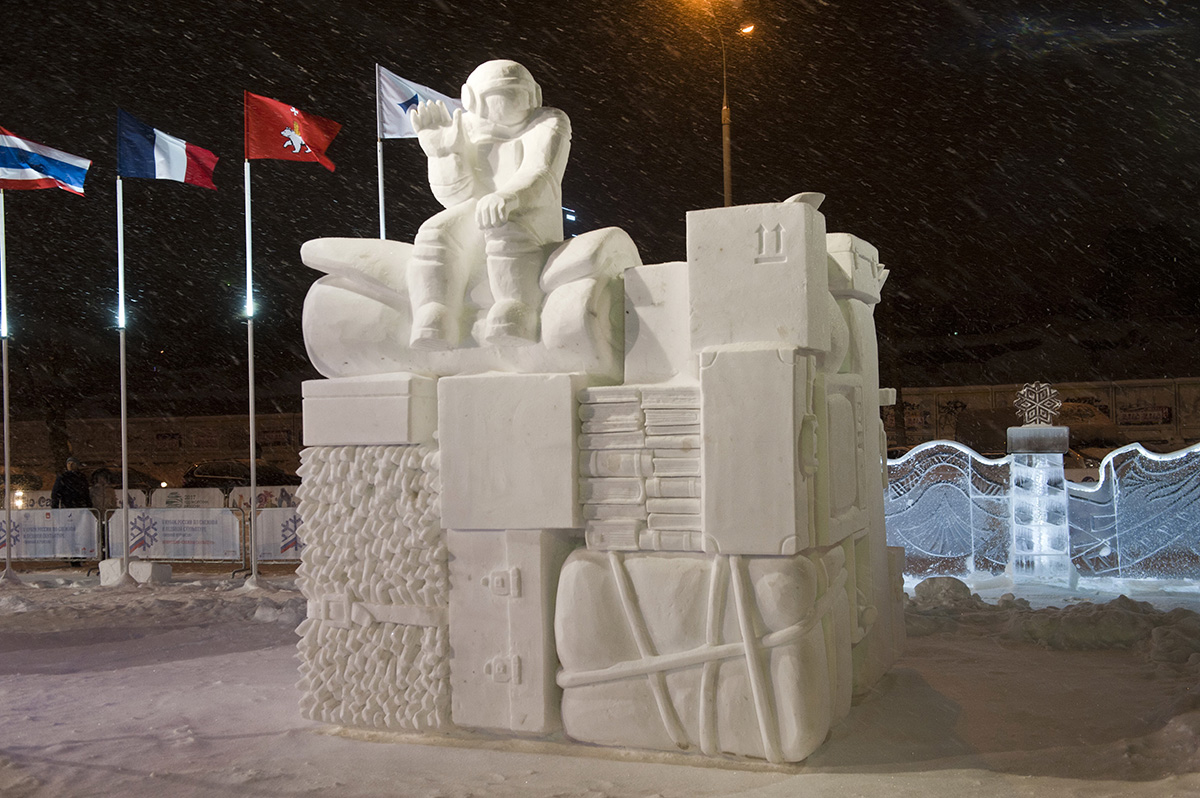 «Дача далеко, зато с видом на Землю» — скульптура-победитель в номинации «Снег»