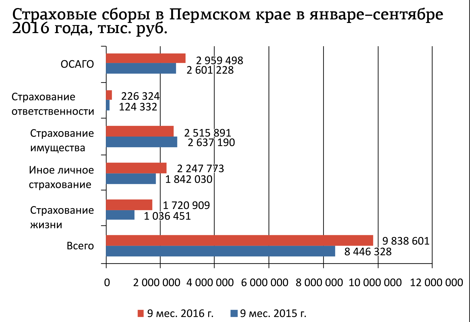 По итогам 12 месяцев прошлого года страховые сборы в Пермском крае увеличились на 16% по сравнению с тем же периодом прошлого года. Общая сумма составила 9,8 млрд руб. При этом количество заключённых договоров снизилось на 1%.