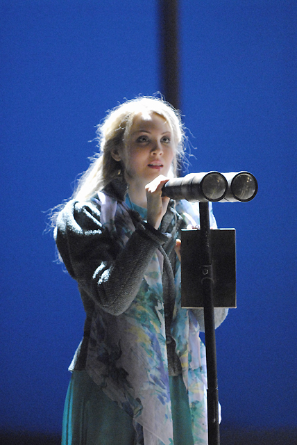 Есть, впрочем, и постоянный элемент сценического интерьера — многоярусный вращающийся шатер, который поочередно используется то в качестве кофейни, то в качестве парохода «Ласточка», куда Паратов завлекает Ларису. Этот многофункциональный шатер-кофейня-пароход творит пространство, с одной стороны, вполне реалистичное, с другой — условное.