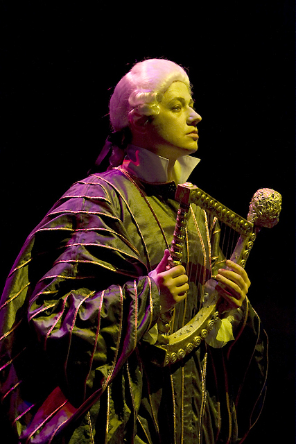 Наконец, оркестр тоже стал действующим лицом — а как иначе в спектакле, посвященном Музыке? Здесь оркестр существует в камерном варианте — всего 25 музыкантов, включая двух приглашенных, которые заслуживают особого упоминания.