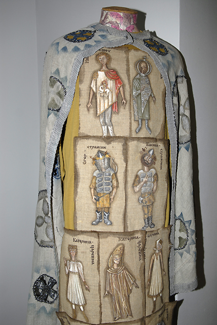 Кстати, костюмов на выставке представлено немало. Их можно подробно рассмотреть вблизи, оценить фантазию художника и мастерство изготовления. Некоторые расписаны вручную, как живописные холсты. Вернисаж напоминал костюмированный бал: по залу разгуливали студенты, одетые персонажами тюзовских спектаклей. Декорации к спектаклям тоже в изобилии присутствуют в экспозиции — причем как в виде эскизов, так и в виде макетов.