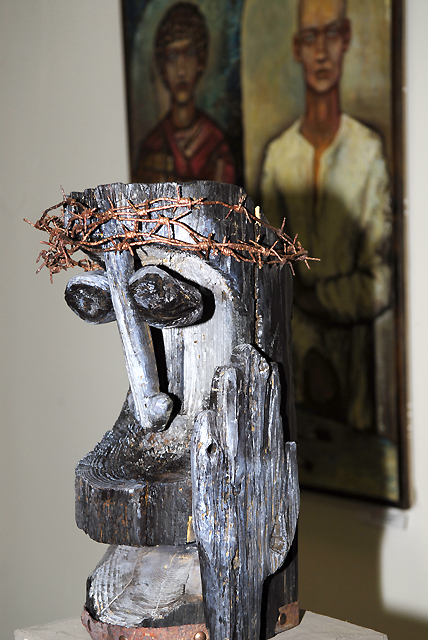 Последний зал посвящен работам, не связанным с театром. Здесь центральное место занимает «Христос деревни Сюзьва» — выдающаяся работа, новый взгляд на эстетику и содержание пермской деревянной скульптуры. Лик Христа, вырезанный из обожженного бревна, в «терновом венце» из лагерной колючей проволоки в концентрированном виде рассказывает о Пермском крае буквально все. По словам Жаркова, идея этой скульптуры возникла у него, когда он увидел в деревне остов полусгоревшей избы.