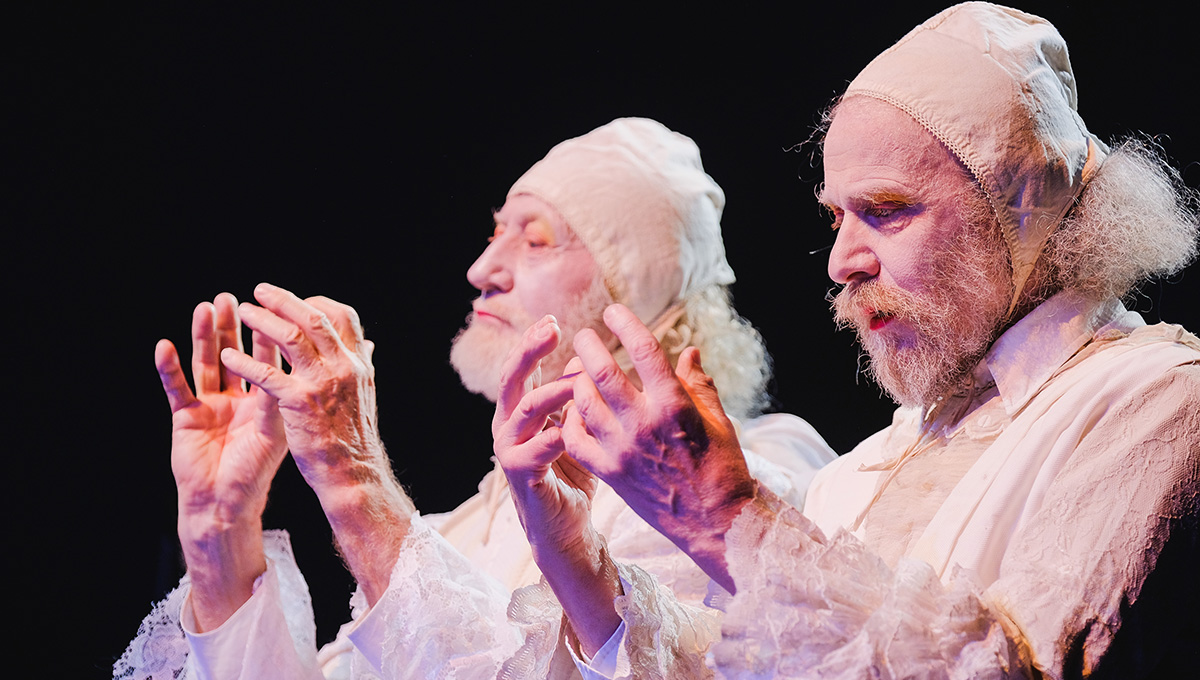 Искусство и литература времён барокко заигрывали со смертью, создавая особый ироничный культ, который воплощался в «парадах смерти» или «парадах со смертью». Вот и в спектакле режиссёра Сержа Нуаеля перед зрителями — бесконечный парад по-барочному причудливых персонажей, выясняющих отношения со старостью и смертью под красивую современную французскую музыку, напоминающую саундтрек Брюно Куле к фильму «Хористы»; гипнотически завораживающее зрелище, о котором потом хочется долго рассказывать — во всех подробностях. Самое, конечно, трогательное — это два лучезарных старичка, «божьих одуванчика» в младенческих платьицах и чепчиках, будто вернувшихся в детство; неразлучных, больше всего на свете боящихся потерять друг друга.