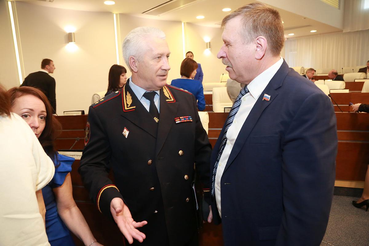 Началось заседание с доклада начальника ГУ МВД по Пермскому краю Виктора Кошелева. В отчёте о работе своего ведомства он заявил, что более половины пермяков стали чувствовать себя защищёнными, а 22% жителей Перми даже считают, что после реформирования полиция стала работать лучше. «Тем не менее тот факт, что только двое из трёх пермяков чувствуют себя в безопасности, должен являться для нас стимулом в решении многих правоохранительных задач», — сказал Кошелев.