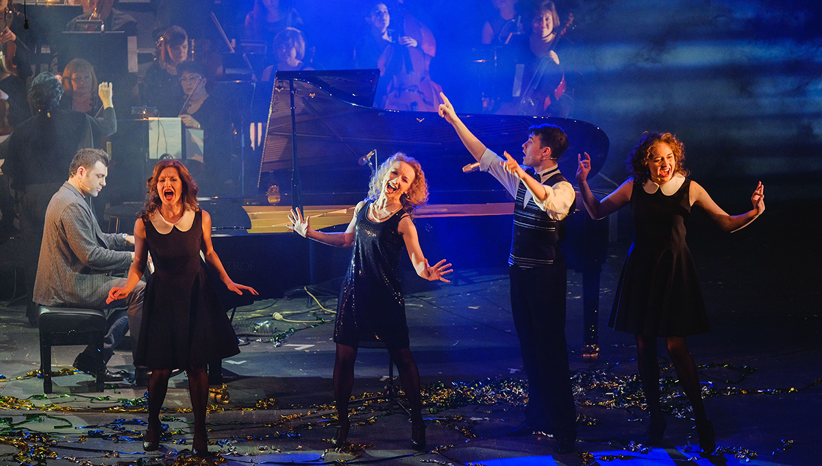 Дальнейшую «объездку» рояля поручили композиторам, которые сотрудничают с театром, и начали с Евгения Загота, автора мюзикла «Винил», который театр уже три года мечтает поставить, но никак не может, потому что для этого нужно провести реконструкцию механизации сцены, и — ура! — новый краевой минкульт обещал, что реконструкция таки будет. Мюзикл уже полностью отрепетирован и буквально рвётся на сцену, что и продемонстрировали артисты театра во главе с юными исполнителями главных ролей — студентами выпускного курса Анной Огорельцевой и Маратом Мударисовым.