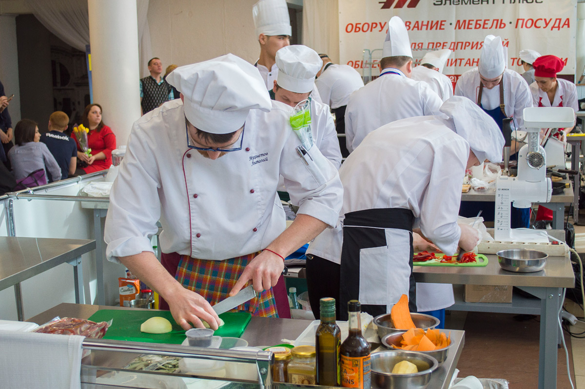 Конечно, самое «олимпийское» зрелище — это индивидуальные соревнования поваров в заданных номинациях. Судьи внимательно следят за тенденциями в мировом кулинарном искусстве и стараются придумать что-нибудь яркое и необычное. Например, в этот раз студенты соревновались в приготовлении каш и бургеров. Хватит уже отдавать быстрое питание на откуп производителям «розовой слизи», пора делать свои, уральские бургеры на зависть всем. Так, в общем, и получилось. В номинации «Мясное рубленое изделие» блеснули студенты из Екатеринбурга с бургером из лосятины, курицы и говядины. Необыкновенно сочным, как уверяли дегустаторы из жюри. Мы поверили, давясь слюной…