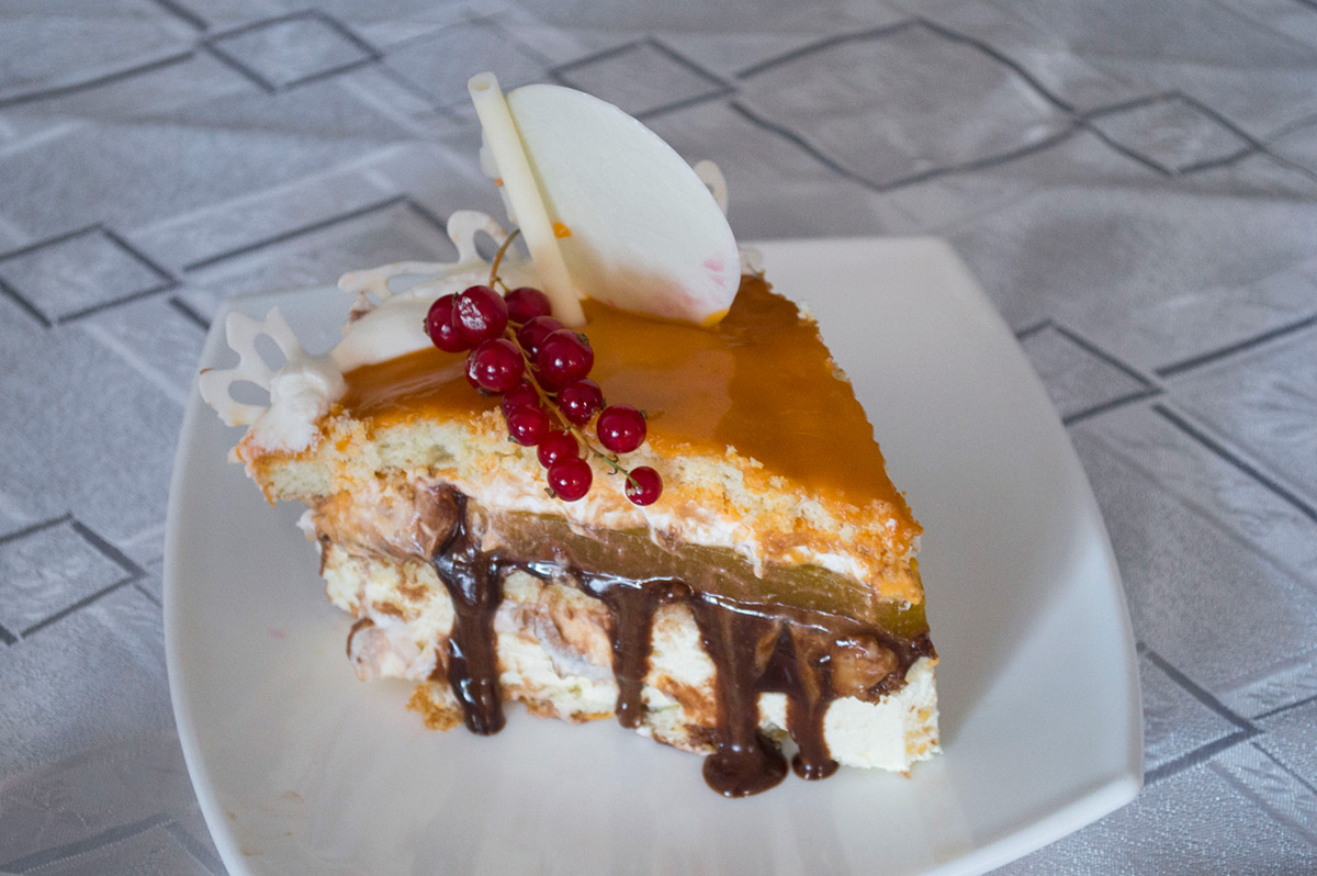 Обычно подобные кулинарные соревнования — мука для сидящего на диете журналиста. Мало что можно пробовать, только любоваться вдосталь. Современные кулинарные конкурсы отличаются живописностью и декоративностью чрезвычайной, студенты из кожи вон лезут, чтобы всё приготовленное было не только вкусным, но ещё и стильно поданным. Кулинарный дизайн процветает до такой степени, что арбузы, редиску, морковь и прочее теперь превращают в сложные скульптурные композиции, на какие и челюсть не разверзнется. Называется всё это «карвинг». Художественной резьбой по клетчатке занимались на конкурсе даже не студенты, а школьники. Организаторы решили сделать некоторый упор на профориентацию, поэтому школьники и салаты строгали, и бутерброды сочиняли, и напитки, и... стихи — сопроводительные. Блеснули старшеклассники из Кудымкара — с обожжённой рябиновой шпажкой, напитком из квасного сусла и старинным коми-пермяцким киселём.
