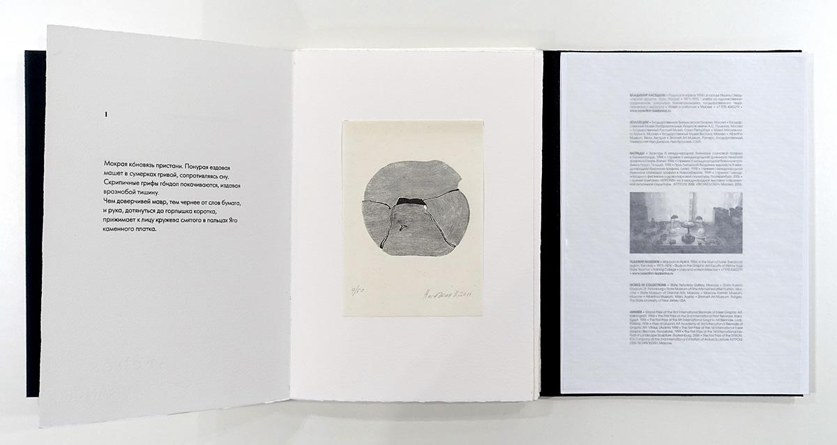 Самый заметный экспонат выставки в «Уникуме» — большая серия иллюстраций к «Венецианским строкам» Иосифа Бродского. В 2011 году эта книга художника демонстрировалась на Венецианской биеннале в качестве параллельного проекта — в старинном интерьере, на пюпитрах, с точечным светом. Загадочные и одновременно простые абстракции корреспондируют с поэтическими строками, выявляя и подчёркивая их загадочность и многослойность. «Гравюры передают авторское видение особого пространства Венеции — одновременно физического и умозрительного, сегодняшнего и вневременного, того уникального пространства, которое существует только здесь — на границе земли, неба и огромной водной глади. Из этого единства метафоричности и топографической точности возникает ощущение погружения к материковым пластам культуры конкретного genius loci, которые переживаются как личный опыт» (Андрей Толстой, доктор искусствоведения, профессор).
