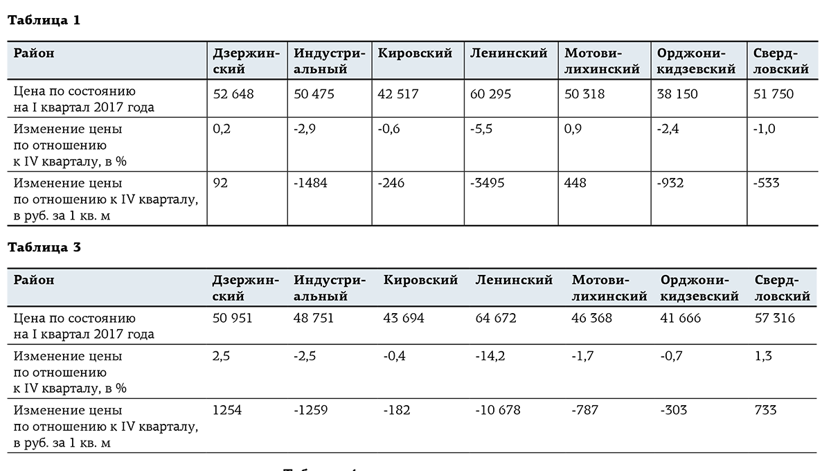 В пяти районах Перми (за исключением Дзержинского и Мотовилихинского) наблюдается небольшое (от 0,6%) снижение цен. Наиболее ярко это выражено в Ленинском районе: цены «сдали» на 5,5% (таблица 1).