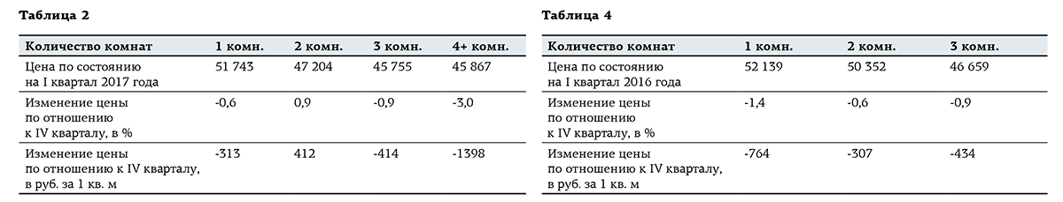 Итоги первого квартала 2017 года на рынке жилой недвижимости продолжили тенденцию прошлого года. Число предложений сокращается, как и цена «квадрата». По данным аналитиков компании «Инвест-аудит», на конец первого квартала 2017 года средняя цена на рынке многоквартирного жилья составила 48 785 руб. за 1 кв. м. При этом на вторичном рынке — 48 252 руб. (на 0,3% меньше, чем в четвёртом квартале 2016 года), в новостройках — 50 248 руб. (снижение на 0,9%).