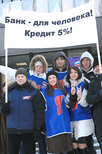 Утро 31 января выдалось в Перми довольно морозным, что явно сказалось на длительности митинга, участие в котором приняли до 1,2 тыс. человек. По заверениям руководства «Единой России», «люди сами пришли выразить свою поддержку, их никто не сгонял». Судя по всему, участники этой акции действительно пришли добровольно: бюджетников, студентов и военных, коих так любит обычно использовать для массовки своих митингов «партия власти», было немного. В основном сторонниками курса властей оказались, как ни странно, люди преклонного возраста, разбавленные «Молодой гвардией Единой России».