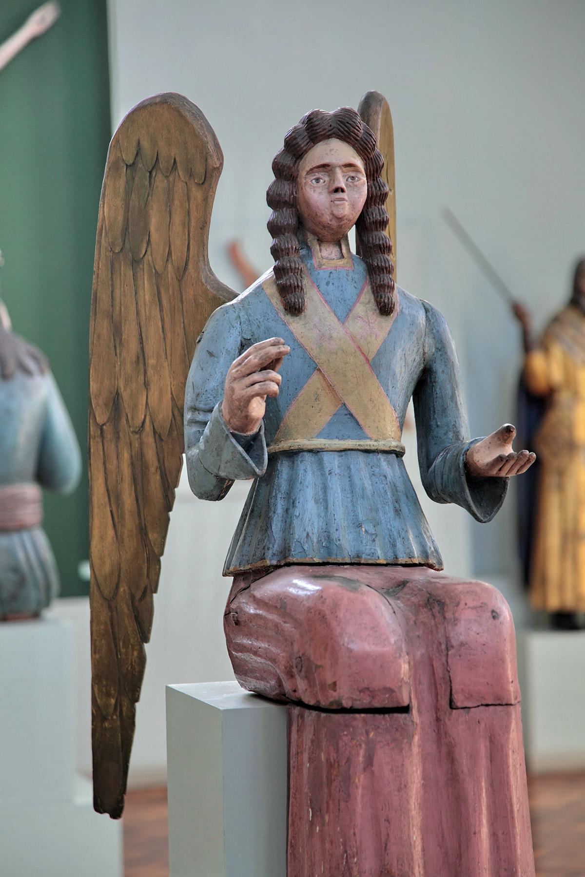 «Ангелов часто называют небесным войском, — говорит хранитель коллекции деревянной скульптуры Женя Шабурова. — Но когда смотришь на кирьяновские фигуры, возникает ощущение, что перед тобой Преображенский петровский полк».