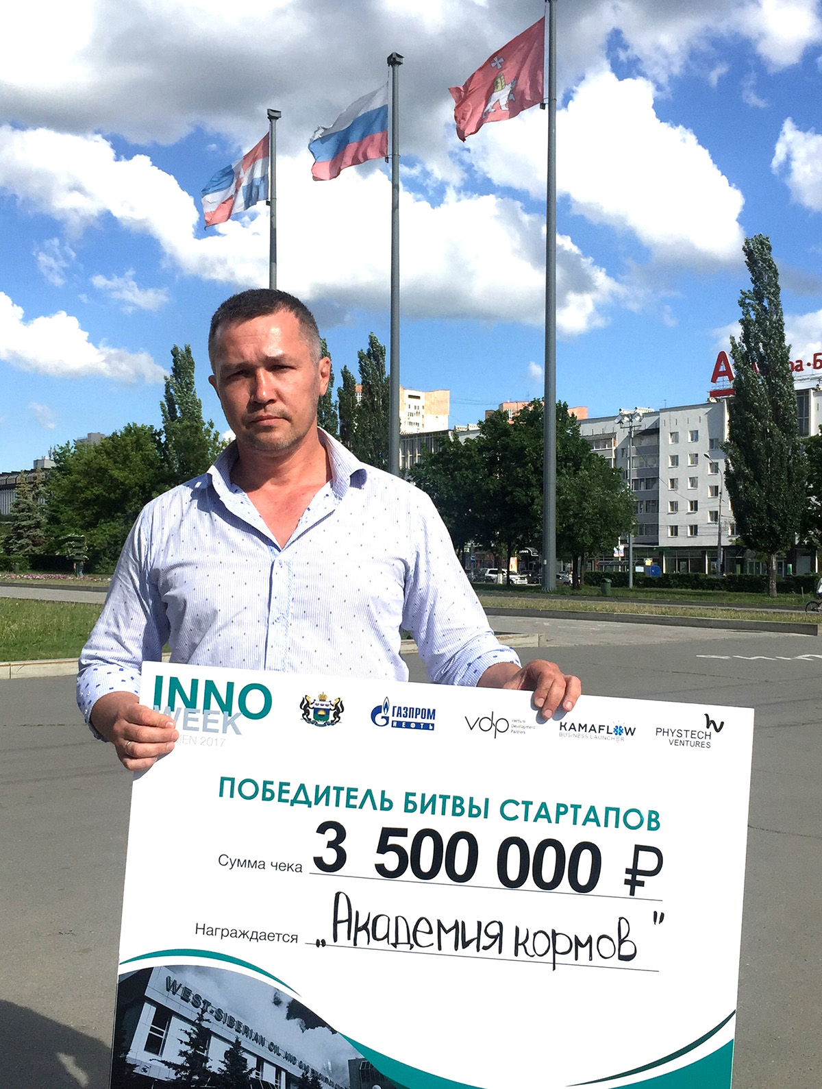 Пермский проект, который представило МИП «Академия кормов», выиграл грант конкурса InnoWeek-2017, который в конце мая провёл Технопарк Тюмени под эгидой регионального правительства. Пермские инноваторы получили 3,5 млн руб. из бюджета области и право прописки в бизнес-инкубаторе технопарка для коммерциализации своего проекта на территории региона. Это укладывается в логику бизнес-модели, которую команда пермских учёных и практиков выстроила на перспективу.