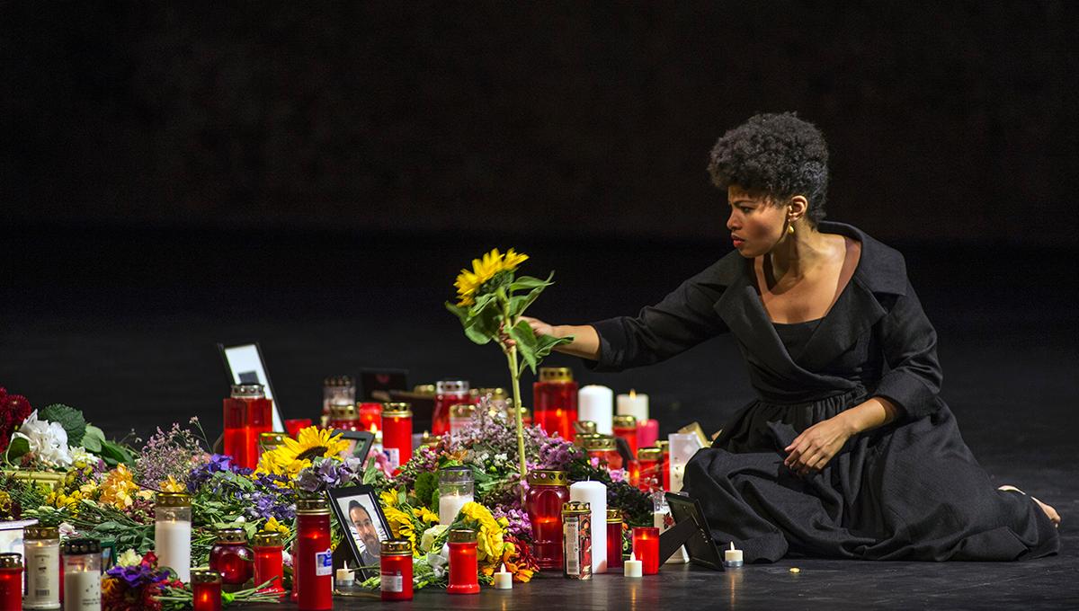 Для Селларса это очень важный момент. Как он сказал на встрече с Клубом друзей Зальцбургского фестиваля, «Что является актуальнейшей повесткой нашей жизни, жизни человечества в последние два-три года? Бомбы на вокзалах, бомбы в метро, грузовики, врезающиеся в толпу людей. Каждую неделю происходит нечто подобное. И что трогает больше всего? Тысячи людей выходят из своих домов с цветами, со свечами и устанавливают их на площадях. Люди говорят: «Мы не будем отвечать на ненависть ненавистью, мы ответим любовью, и наша любовь сильнее бомб». В наше время, когда политики отвратительны, масс-медиа отвратительны, когда кажется, что человечности не осталось, так удивительно видеть, что люди выходят из дома с посланиями о чём-то ином».