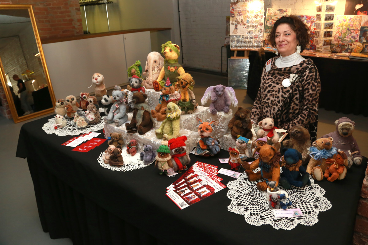 Медведи Тедди объединяют и дарят радость! В этот раз объединились участники не только из Перми, но и из Москвы, Екатеринбурга и даже из Германии. Светлана Салитан, пермячка, уехавшая в Германию много лет назад, делает кукол, одетых в расписанные ею шелка. Выглядит очень гламурно. Куклы довольно большие, эффектные. А рядом столик совсем молодой кукольницы из Екатеринбурга Лизы Ззи (Салогиной), которая приехала в Пермь со своими «творческими тараканами» — так называются куклы-малышки, очень смешные белые тараканчики, а также с «огурцами-молодцами», с Адамом и Евой, расположившимися в яблоке, как два червячка, и много ещё с чем забавным.
