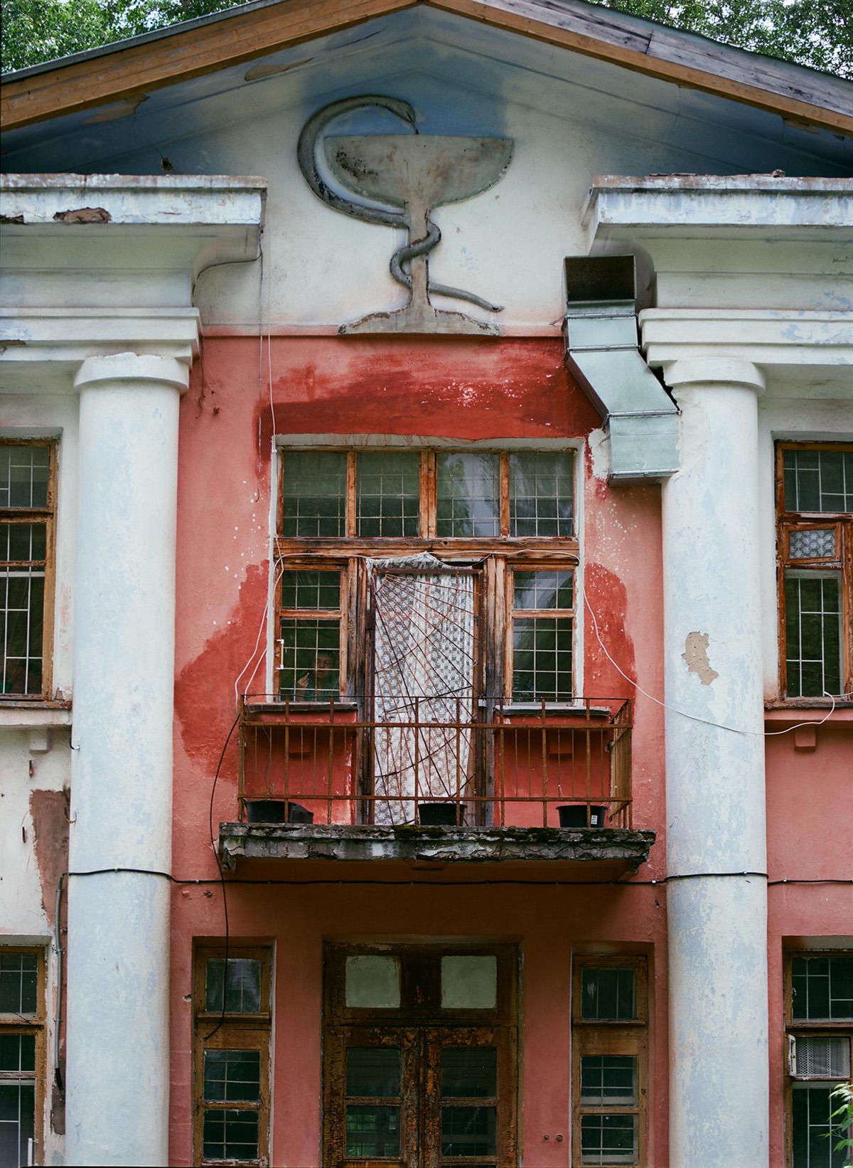 Апофеозом истории стал последний, абсолютно сюрреалистичный эпизод. В одном из окон разрушающегося здания с живописными подтёками и трещинами, решётками и залатанными фанерой дырами, с барельефом огромной змеи под крышей почти заброшенной психбольницы смотрит на нас больной и, увидев, что я фотографирую, показывает мне средний палец. За что? Почему? Что это? Может, это яркий образ «сталинского вампира», проступающего сквозь время и подающего нам зловещие знаки?