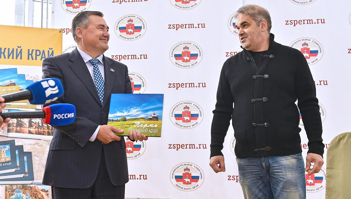 В перерыв в фойе Органного зала руководитель издательства «Стиль-МГ» Олег Андрияшкин передал в дар парламентской библиотеке экземпляр фотоальбома-путеводителя «Пермь и Пермский край», который был выпущен в этом году. В краевом парламенте издание пополнило коллекцию краеведческих книг. «Само слово «Пермь» как памятник. И живёт оно уже более 900 лет. Думаю, что всем, кто любит путешествовать по родному краю и открывать неизвестные для себя места, книга принесёт приятные минуты», — сказал председатель регионального парламента Валерий Сухих.