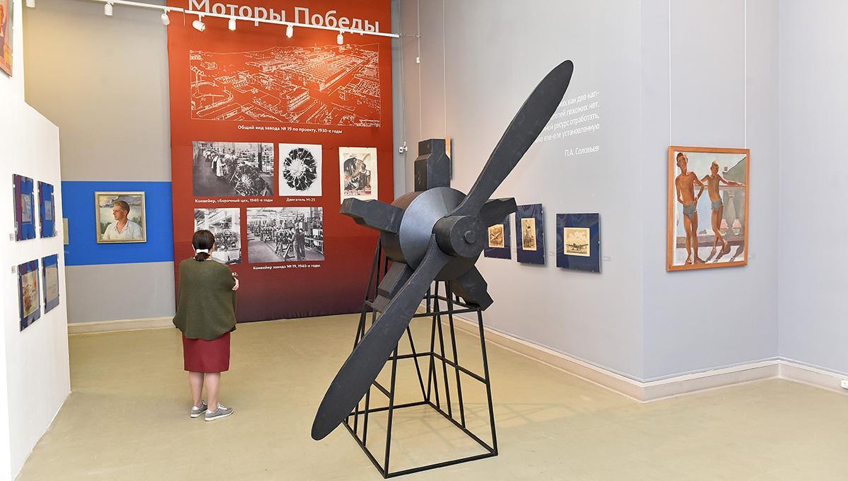 Особая страница выставки посвящена основанию завода №19, позже — завода им. Сталина, ещё позже — им. Свердлова, который дал начало всему «кусту» пермских авиакосмических предприятий, от «Авиадвигателя» до «Протона». Редкая видеохроника, предоставленная музеем предприятия «Пермские моторы», рассказывает о поездке первых руководителей завода в США, откуда привезли чертежи первых авиамоторов. Моторы надо было делать быстро, война уже была близкой неизбежностью. Трудно себе представить, как это удалось, но за годы Великой Отечественной войны пермский завод №19 выпустил 31 тыс. поршневых авиамоторов, основанных на американской лицензии. Пермские моторы М-11 устанавливались на главные военные самолёты — легендарные У-2 (они же По-2). Можно сказать, уже тогда Пермь определяла боеспособность отечественной авиации. Самолёты, которые летали на пермских моторах, запечатлел в своих блестящих карандашных набросках легендарный график Анатолий Яр-Кравченко. Его большая военная серия оказалась на выставке благодаря его дочери, живущей в Перми художнице Наталье Талавире.
