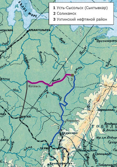 Но гидрографическая экспедиция Попова даже не рассматривала «архангельский» маршрут. Четыре её отряда исследовали пути от запертой в глуши нефтяной кладовой на станцию Котлас (на Северной Двине) и на Каму — через заброшенный Северо-Екатерининский канал. Соответственно, вологодский и пермский маршруты.