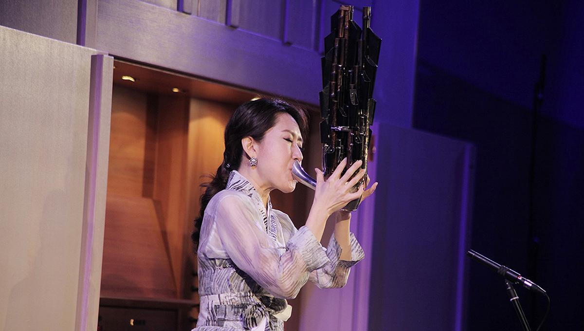 Сэнхван — это несколько бамбуковых трубок разной длины, помещённых в общий круглый резервуар, из которого выходит трубка потолще, в которую дует исполнитель, при этом пальцами обеих рук регулируя высоту и продолжительность издаваемых сэнхваном звуков. С виду это напоминает большую курительную трубку, из которой вырастает деревянная модель изъеденной карстом горы, которых так много в Юго-Восточной Азии. Согласно общепринятой версии, инструмент действительно происходит от курительной трубки — об этом в увлекательном, очень уместном и приятно лаконичном предисловии к концерту рассказала ведущая всех событий фестиваля — музыковед Екатерина Каленюк.