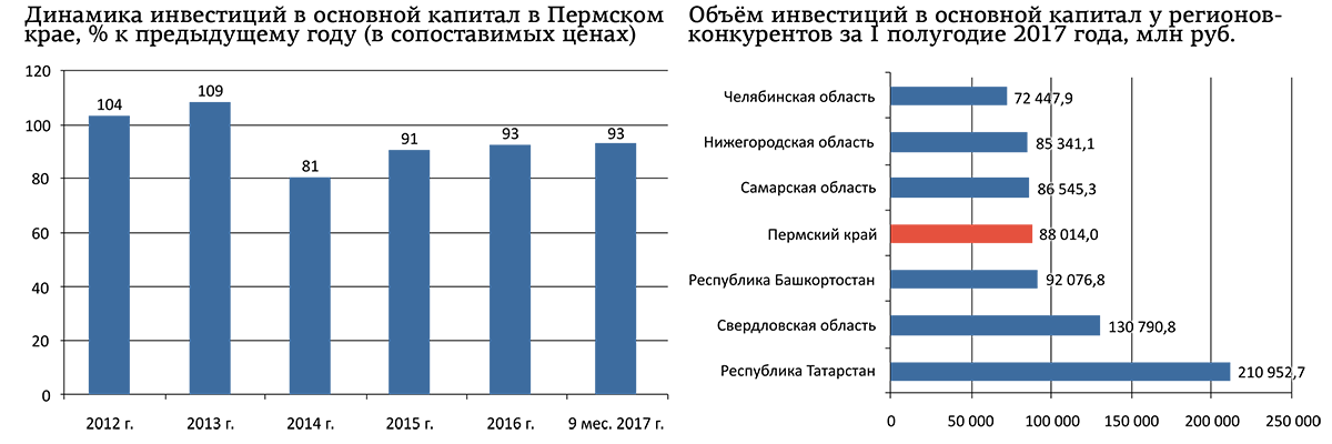 Пермский край относится ко второй группе. По данным Пермьстата, по сравнению с аналогичным периодом прошлого года объём инвестиций в основной капитал в целом по региону сократился на 7%. Таким образом, негативная динамика показателя сохраняется в регионе четвёртый год подряд.