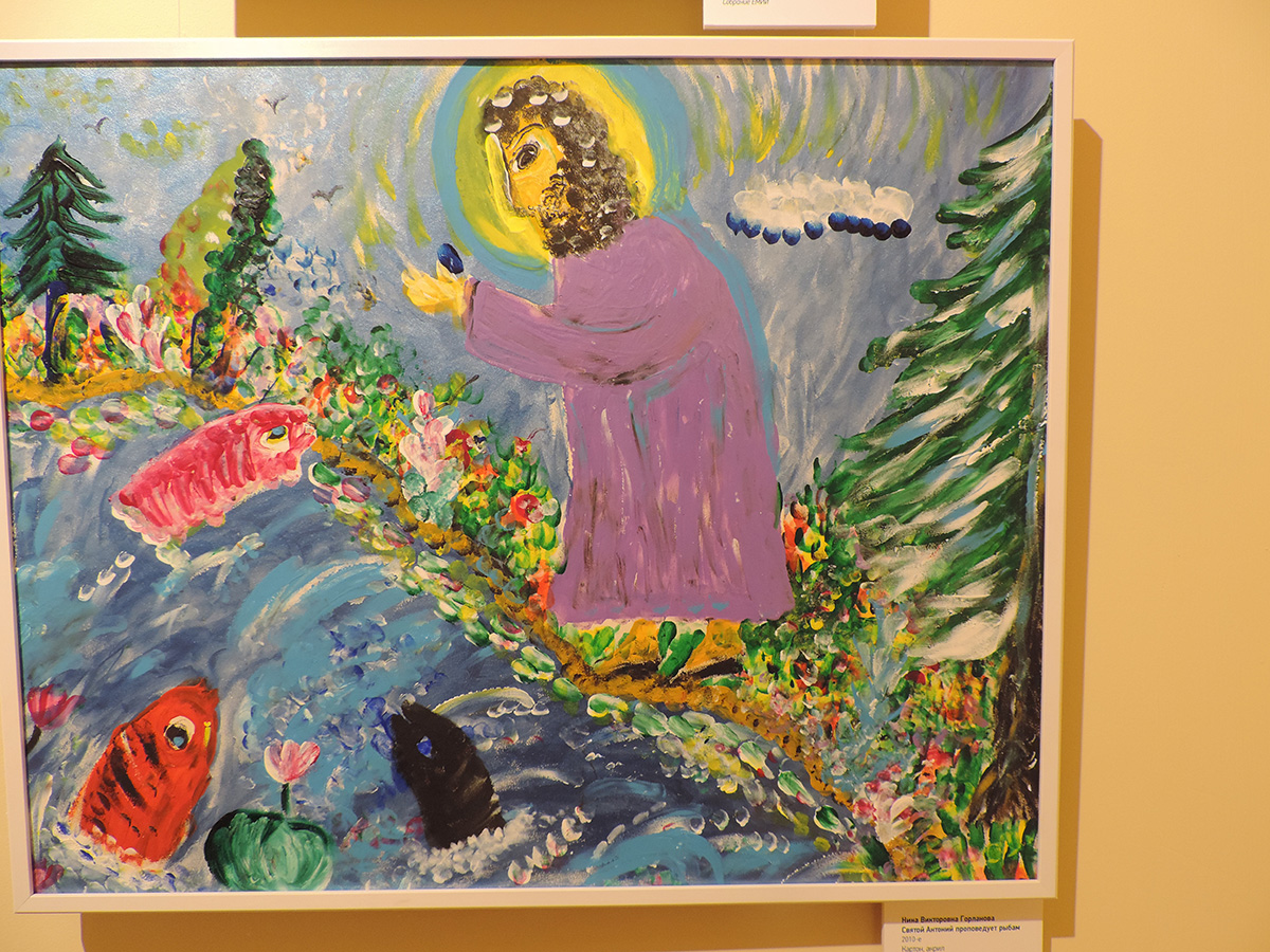 Слово «простодушие» так и просится в разговор, когда речь идёт о наивной живописи. Однако простодушие это, как правило, внешнее: большинство наивных художников — личности сложные, зачастую весьма эрудированные, продуманные и, на самом деле, вовсе не наивные. Это в первую очередь верно по отношению к пермячке Нине Горлановой, картинам которой в музее Ройзмана отдан целый зал, правда, небольшой — 6 кв. м. Впрочем, когда там находишься, его ни за что не назовёшь маленьким — картины его словно расширяют.