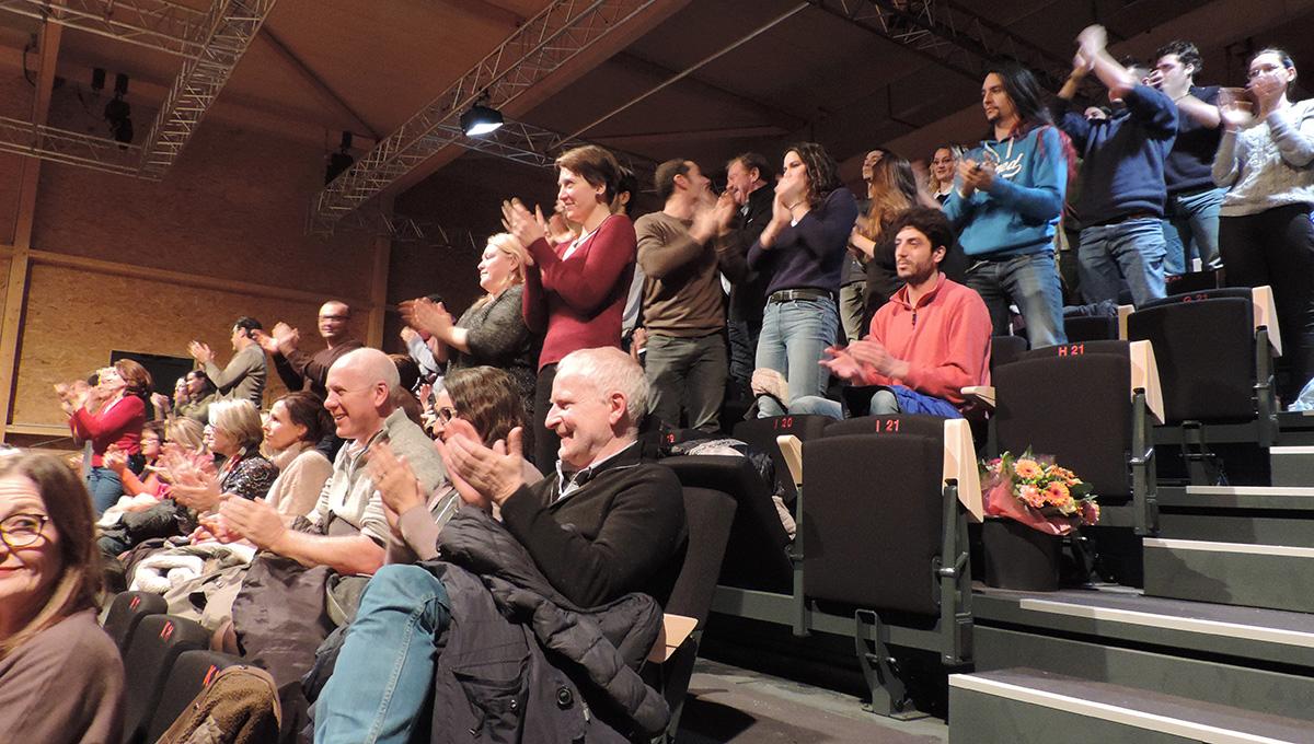 «Конституция» на следующий вечер шла уже с переводом — частично синхронным, частично титрами. Показ этого спектакля предварял круглый стол, во время которого французская публика, частично состоявшая из русских эмигрантов, живо интересовалась русским театром и жизнью в России вообще. Задавали вопросы, живы ли в русском театре классические традиции или везде сплошной авангард, существует ли в России пропагандистский театр, беспокоились по поводу усиливающейся клерикализации образования в России, не забыли и гонения на театральных деятелей по «делу Серебренникова».