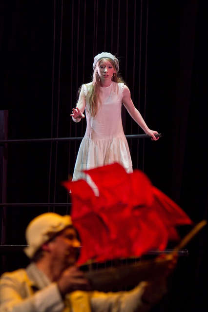 Появление героя обставлено эффектно, как фокус: он буквально возникает на сцене, как настоящий сказочный персонаж. Выглядит Вячеслав Чуистов в этой роли очень романтично. Финал довольно депрессивной истории вдруг оказывается жизнеутверждающим, словно это древнегреческая комедия и всё должно кончиться хорошо, потому что так завещал Аристотель в своей «Поэтике». И, несмотря на уверенную, полную позитива музыку финала (над сценой словно витают тени «Детей капитана Гранта» Дунаевского-старшего), возникает чувство сомнения и даже тревоги: происходящее так нереально, что единственное здравое объяснение — Ассоль окончательно сошла с ума, и мы видим её бред.