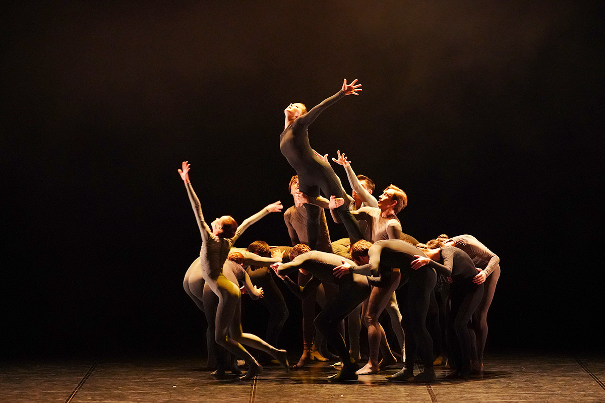 К сожалению, артисты, занятые в Asunder — завершающей миниатюре вечера, такого качества не продемонстрировали. Asunder можно перевести как «На части», но этот перевод мало что даст для понимания происходящего. Здесь вообще излишнее понимание, излишнее обдумывание не нужно, хореография Гойо Монтеро — чистая эстетика. Это тоже исследование телесности, её изобразительных возможностей. 16 танцовщиков то сливаются в многоголовое и многоногое, ведущее какую-то диковинную жизнь существо, то рассыпаются на отдельные единицы.