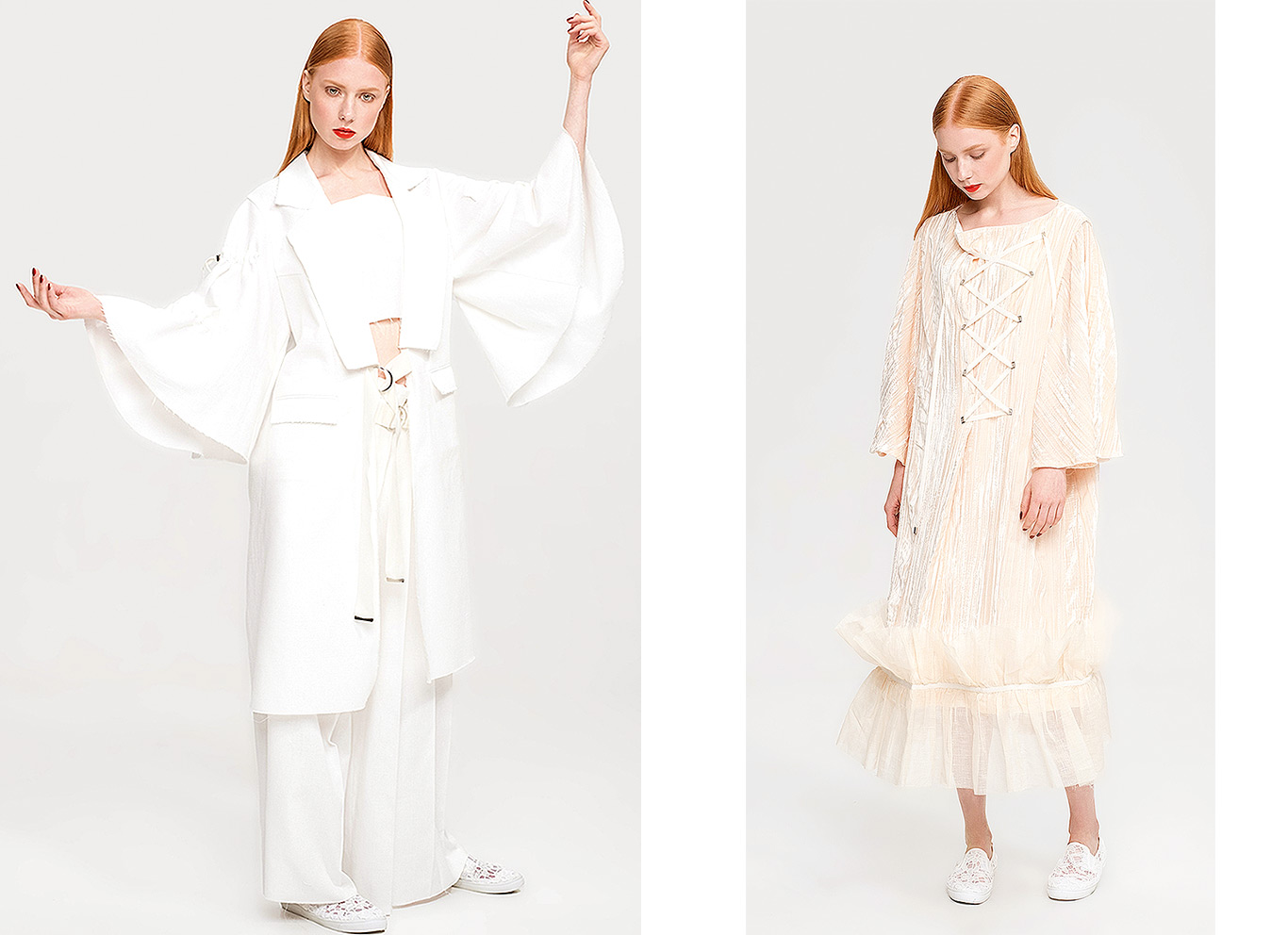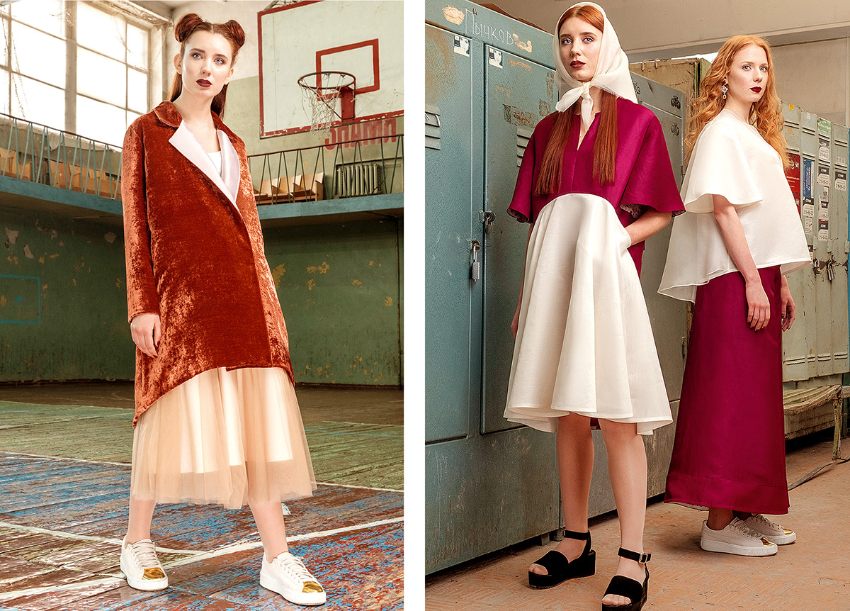 Первая коллекция Евгении и Елены Баяндиных, по их признанию, была скорее выражением их собственного «я». Чтобы показать характер трудных девяностых, в которые сёстры росли, фотосессию было решено провести на развалинах одного пермского завода.