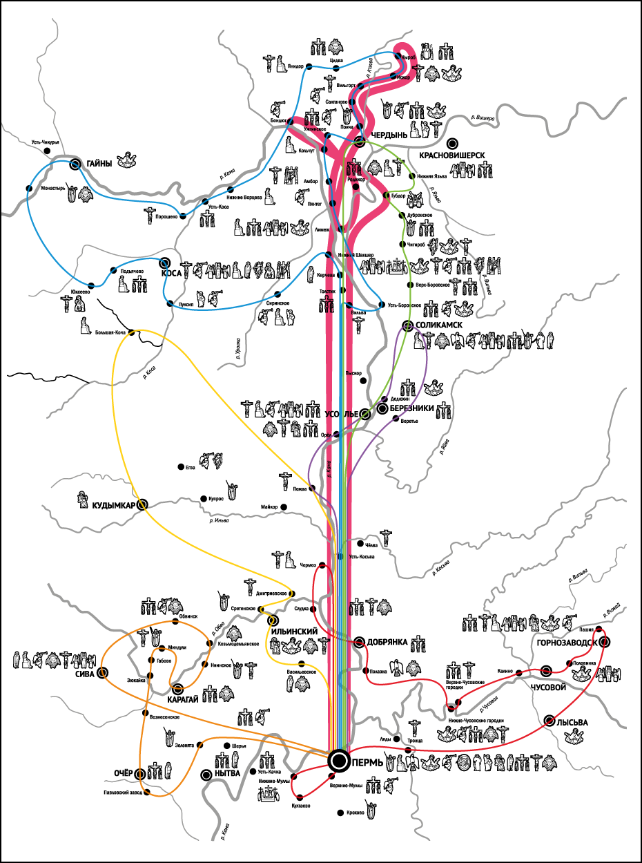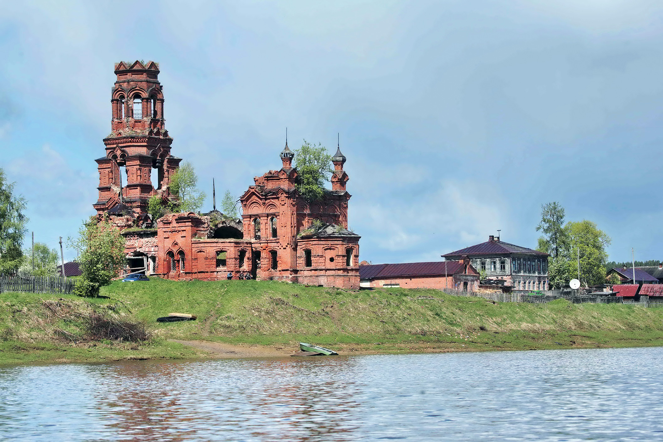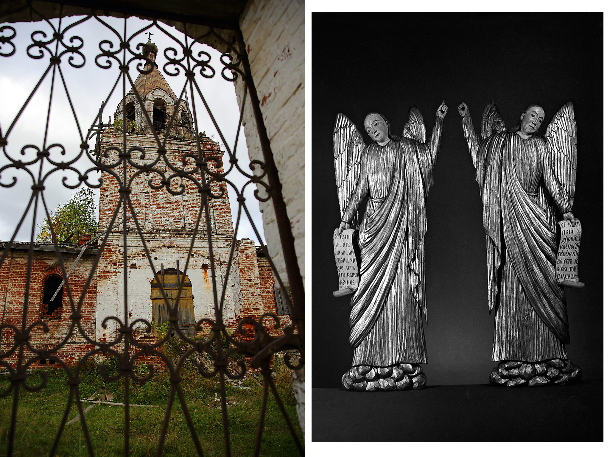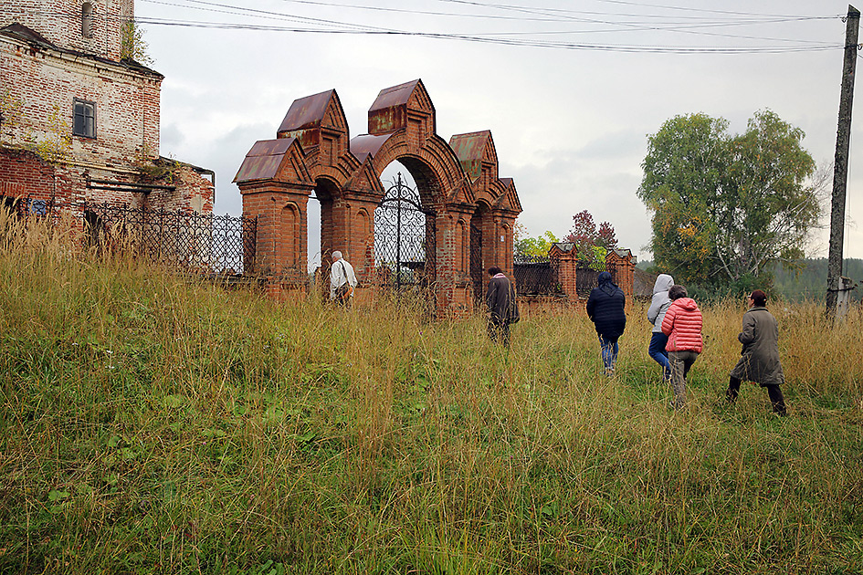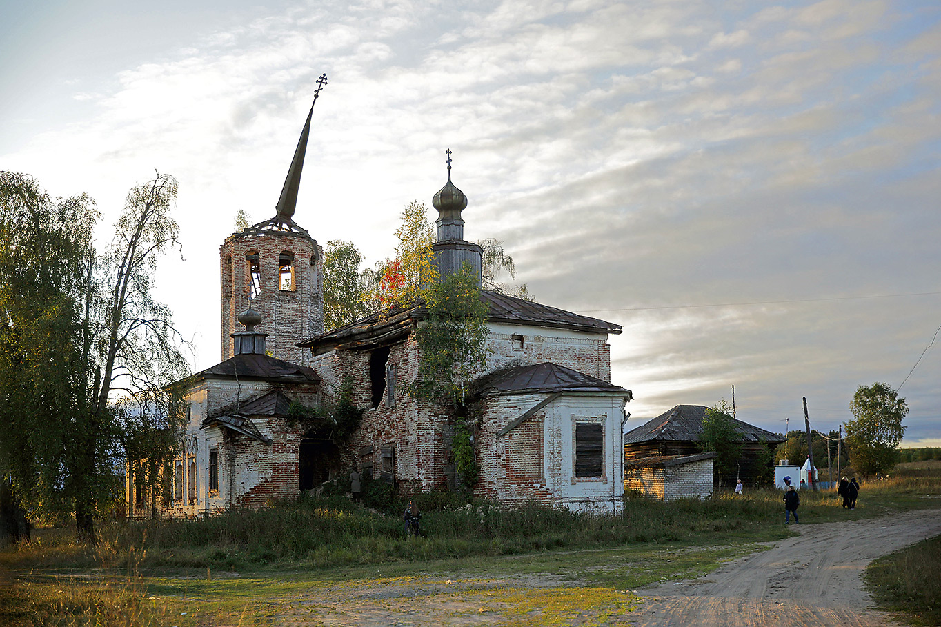 Вторая задача осложнялась тем, что большинство церквей и часовен лежат в руинах, а поселения, духовным центром которых они некогда являлись, заброшены и дороги к ним поросли бурьяном. Чтобы за три дня получить наиболее полное представление о древнем сакральном пространстве, профессор Георгий Чагин и его верный спутник по дорогам Верхнекамья, сотрудник галереи Валерий Заровнянных оптимизировали маршрут, оставив в нём 12 пунктов.