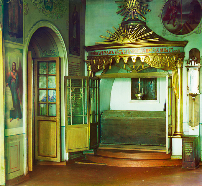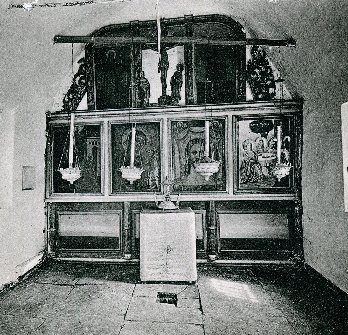 Первая каменная церковь — Святой Троицы — была построена в 1838 году, в 1930-е её сровняли с землёй. В коллекции галереи хранятся шесть экспонатов, вывезенные Николаем Серебренниковым из этого храма и позволяющие представить фрагменты его внутреннего убранства до уничтожения.