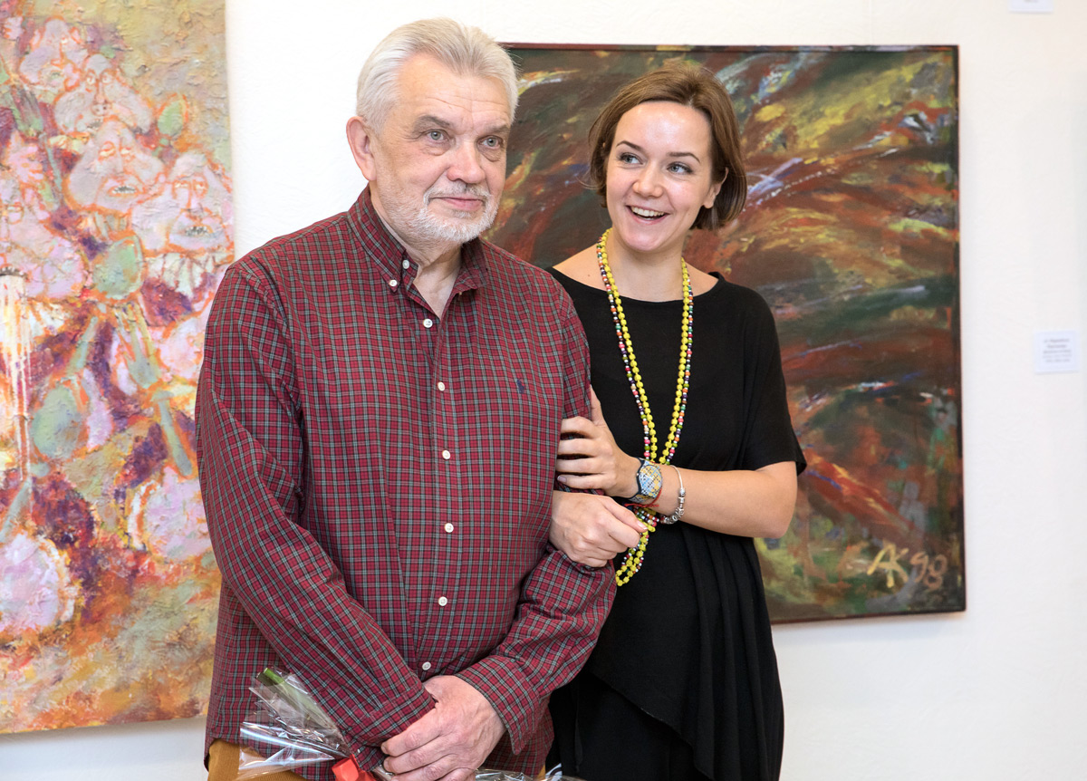 В реальной жизни Александра Казначеева театральная тема получила интереснейшее продолжение: его дочь Мария, красавица и умница, стала актрисой. На вернисаж она приехала из Москвы, чтобы поздравить отца со столь редким событием.