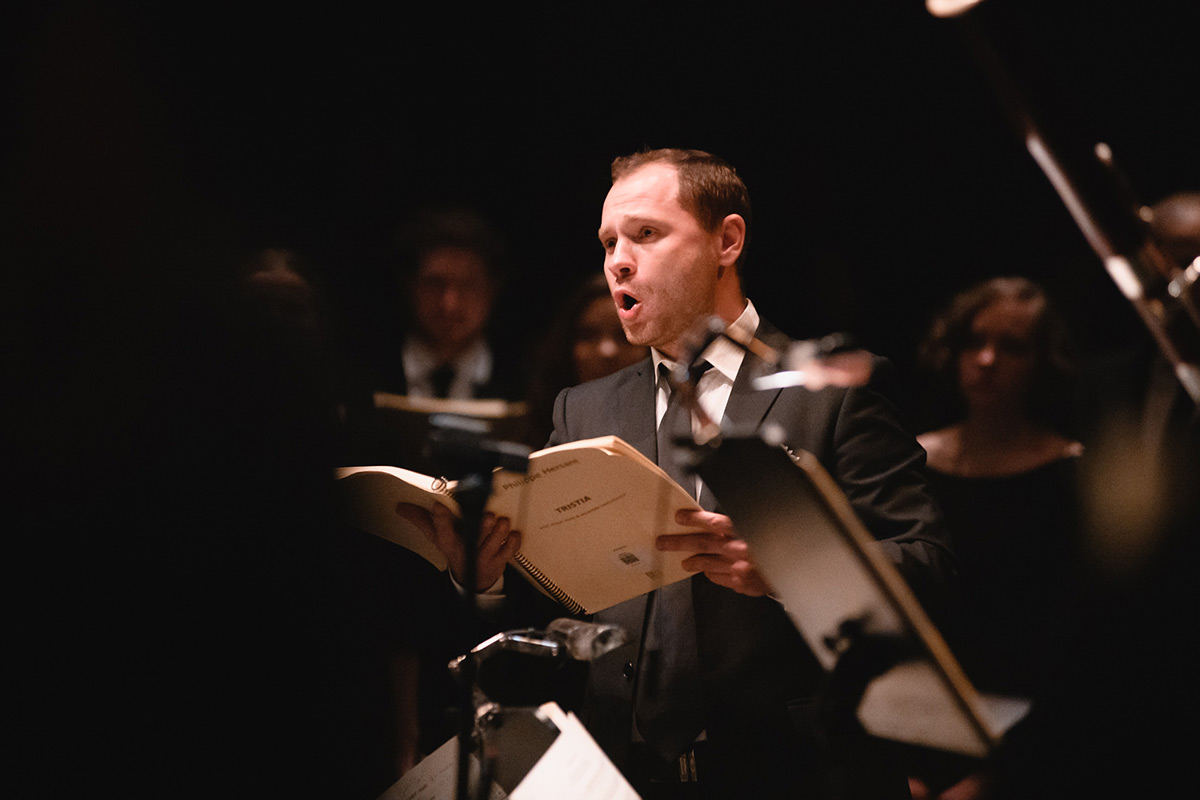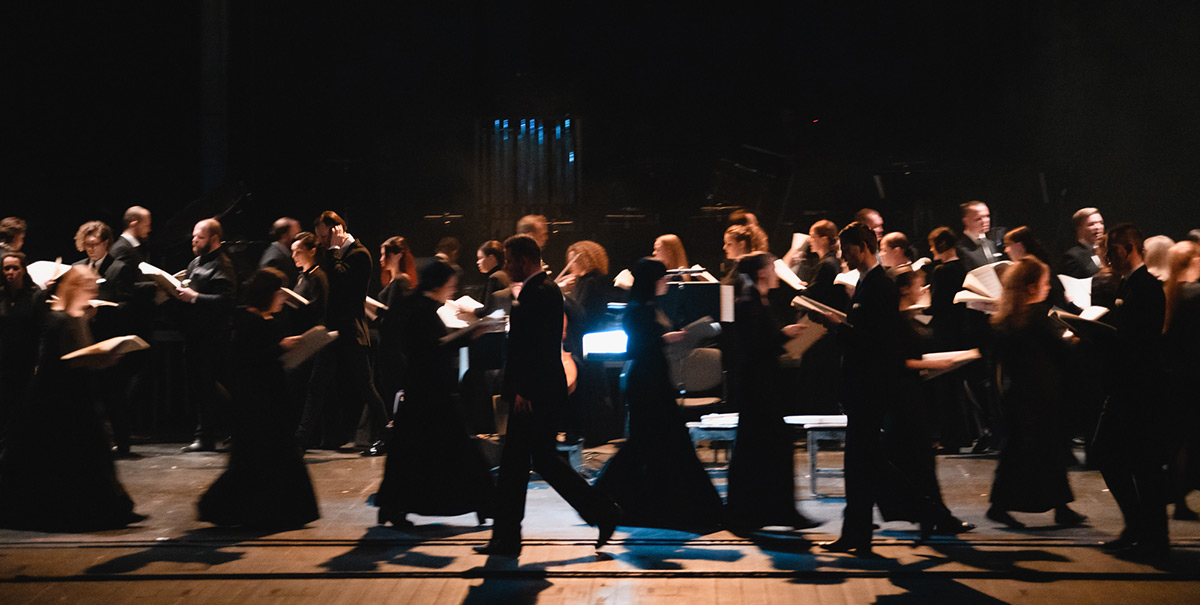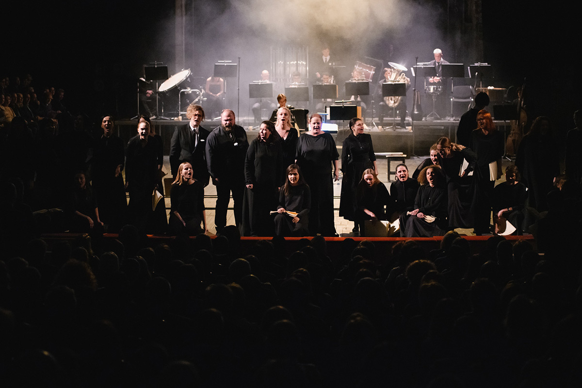 Tristia наполнилась активным действием, которое перетекает со сцены в зал и обратно, и дирижёр является частью этого действия, а в момент кульминации присоединяется к хору и поёт.