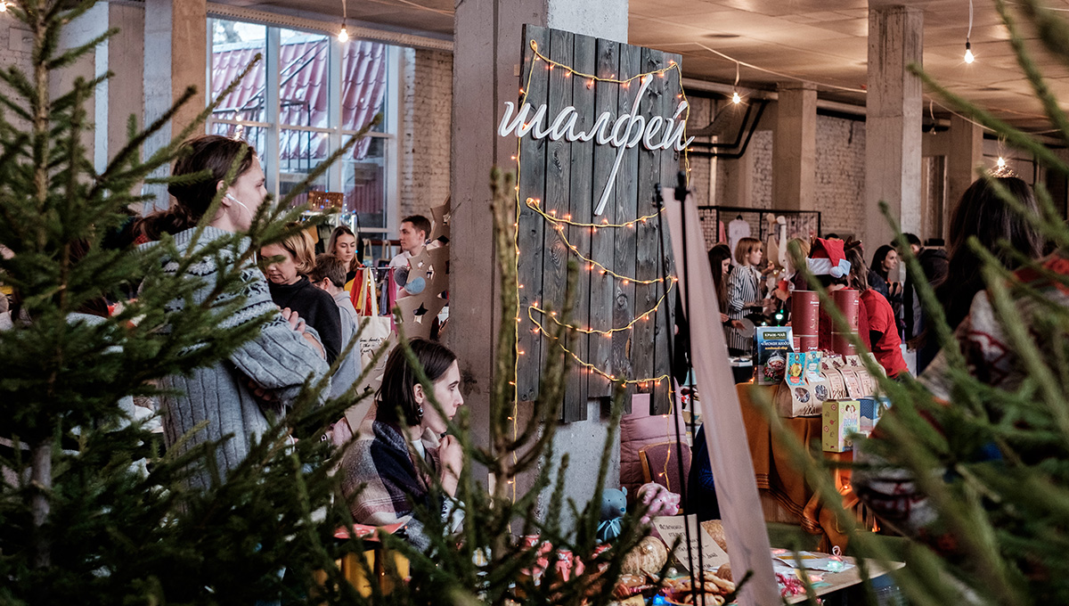 К сожалению, во время работы Red Market выставку немного потеснили столики для детских мастер-классов, но посетители умудрились её всё же рассмотреть. Удивительно, как экспозиция контрастировала и в то же время сочеталась с энергичной, сияющей массой новогоднего маркета. Red Market в этот раз особенно напоминал рождественскую ярмарку где-нибудь в Праге или Нюрнберге: ёлки, гирлянды, музыка и победоносные запахи выпечки и глинтвейна. В ассортименте — игрушки из стекла, дерева, винила, вязаные, шитые; разновидностей имбирного печенья и цветных пряников — не сосчитать; ну, и всё, что обычно бывает на этом маркете: дизайнерская одежда, артизанская керамика, самоварное мыло… Отдельный ряд — продовольствие и напитки: домашний сыр, бургеры всех мастей, деликатесы, безумные изобретения мегакреативной команды Mishka.Food: коми-пермяцкий грибной суп с восточной лапшой рамен, пита, фаршированная лососем, вымоченным в свекольном соке…