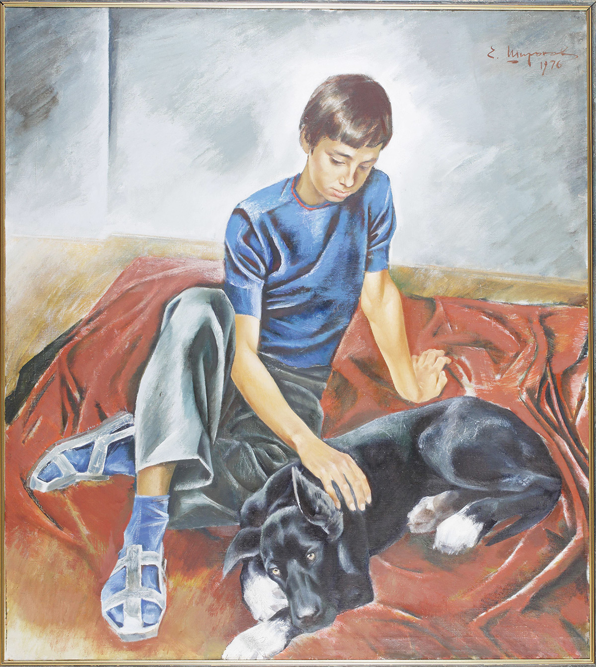 В самом маленьком, заалтарном выставочном пространстве расположилась обаятельная выставка, посвящённая уходящему Году Собаки, которая так и называется — «Соб@ка». Куратор Ирина Андренко и художник Максим Нурулин подобрали в запасниках галереи и в частных коллекциях произведения искусства, посвящённые лучшим друзьям человека, где есть и живопись, и графика, и скульптура, и декоративно-прикладное искусство, и раритетные издания, и многое другое.
